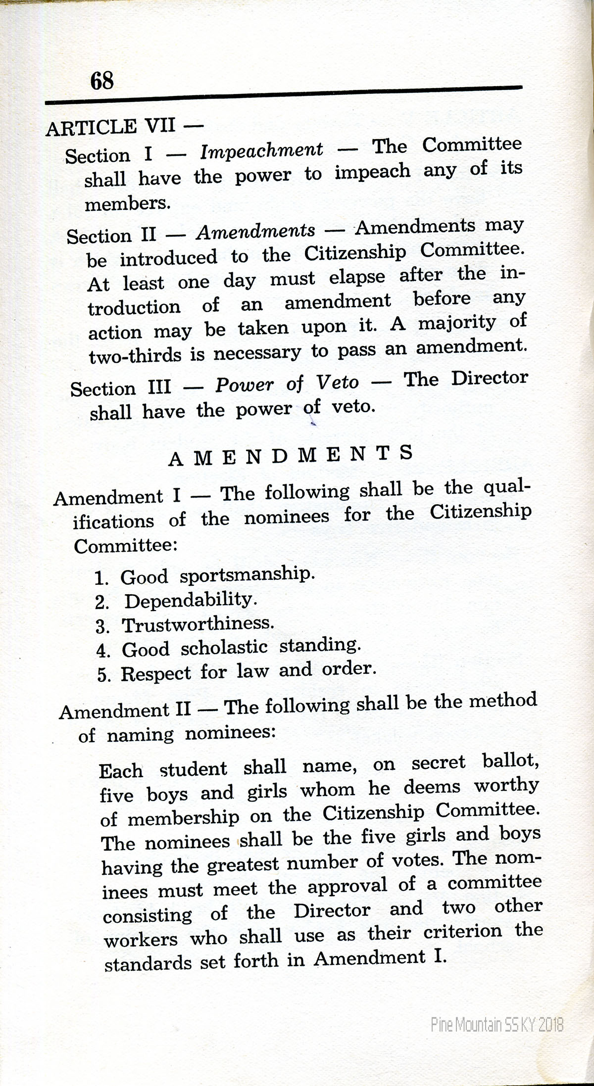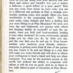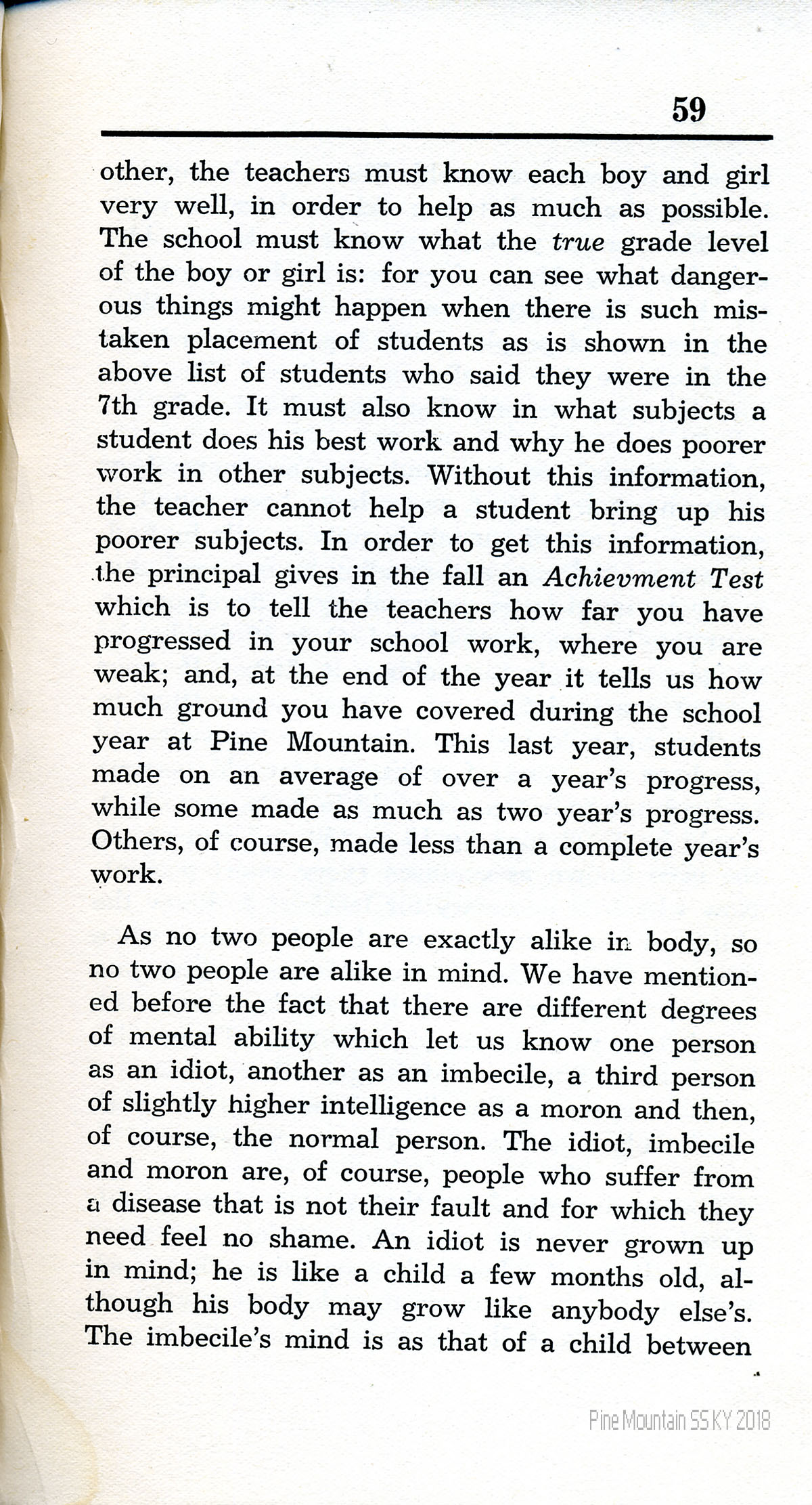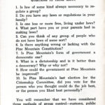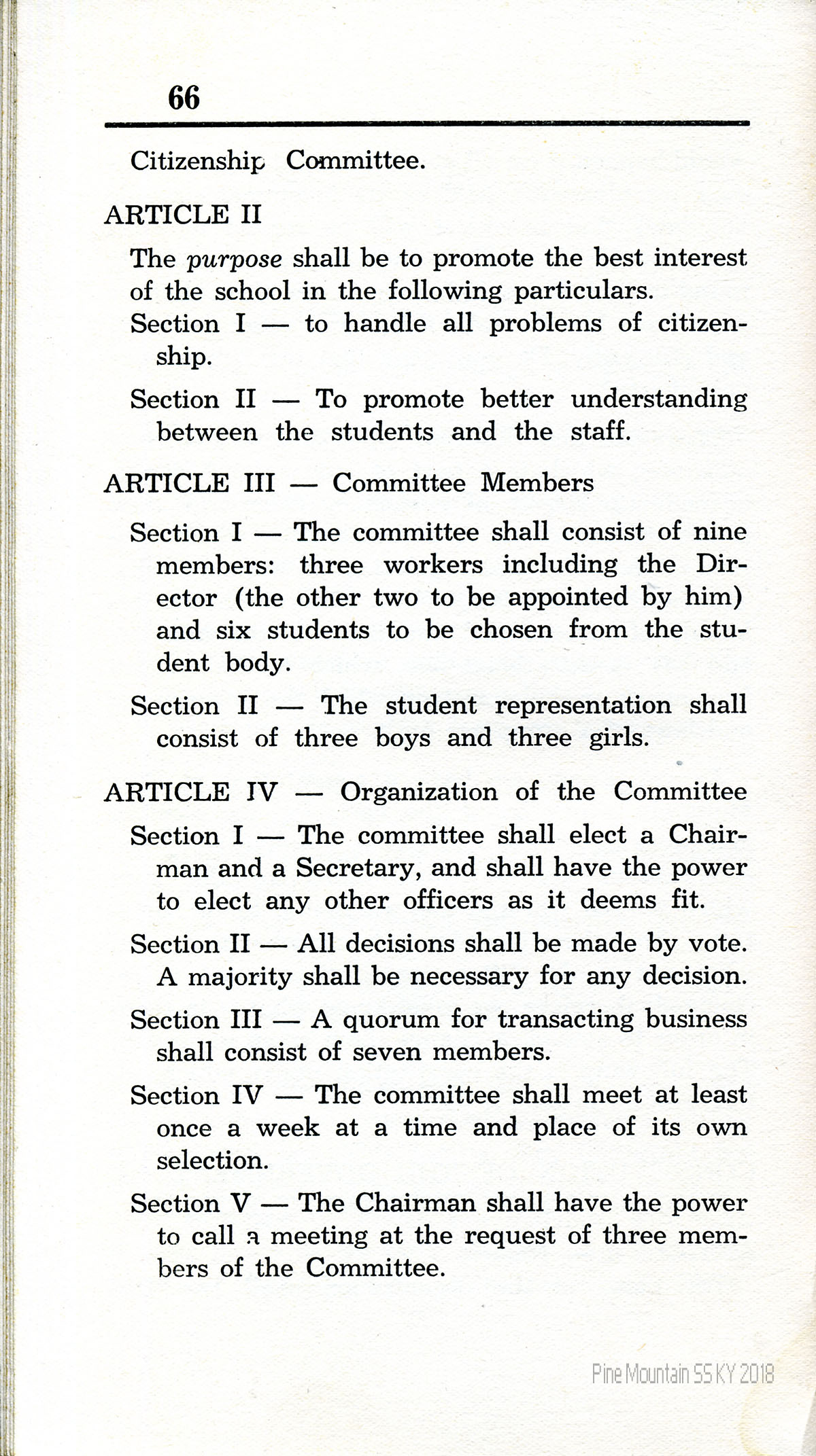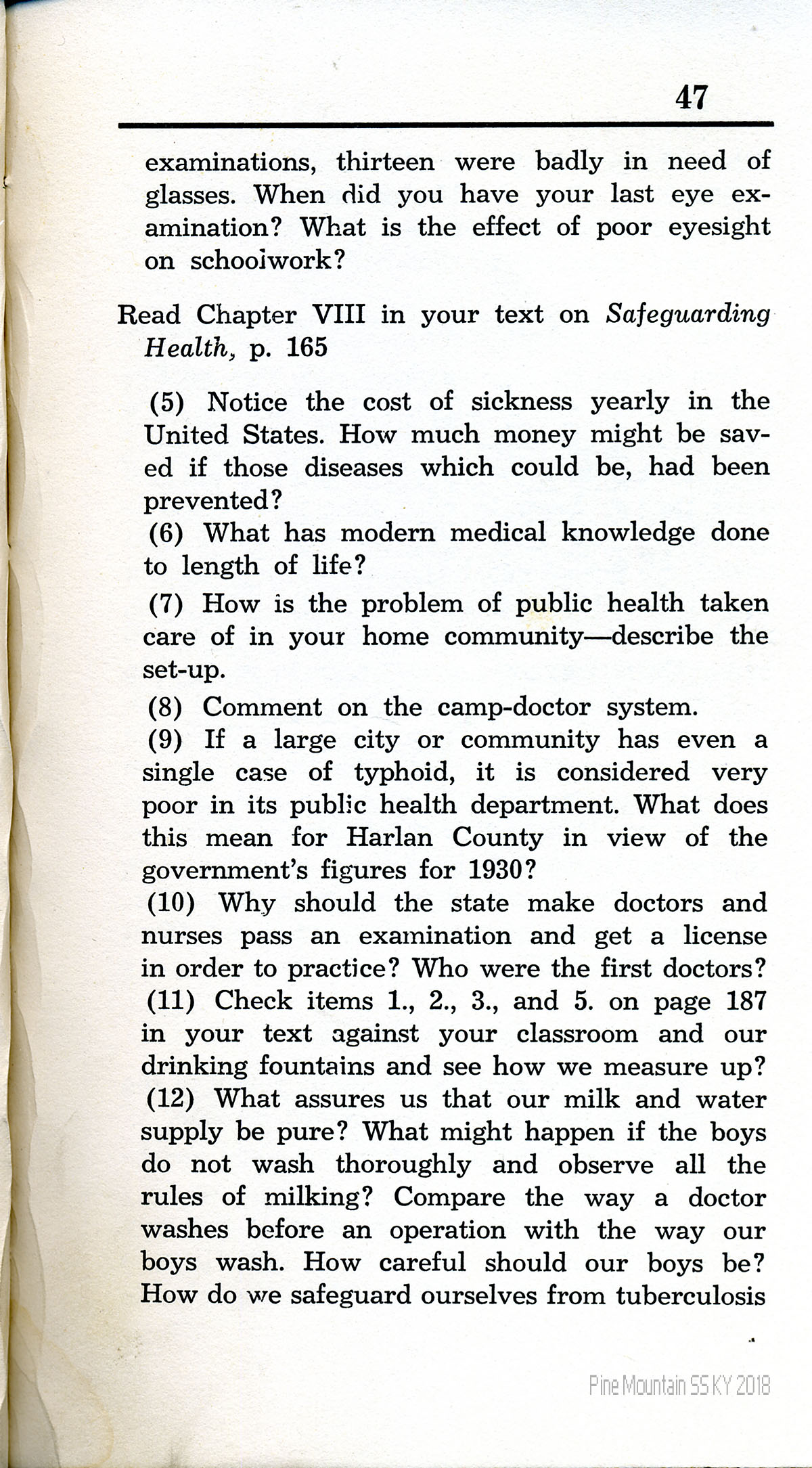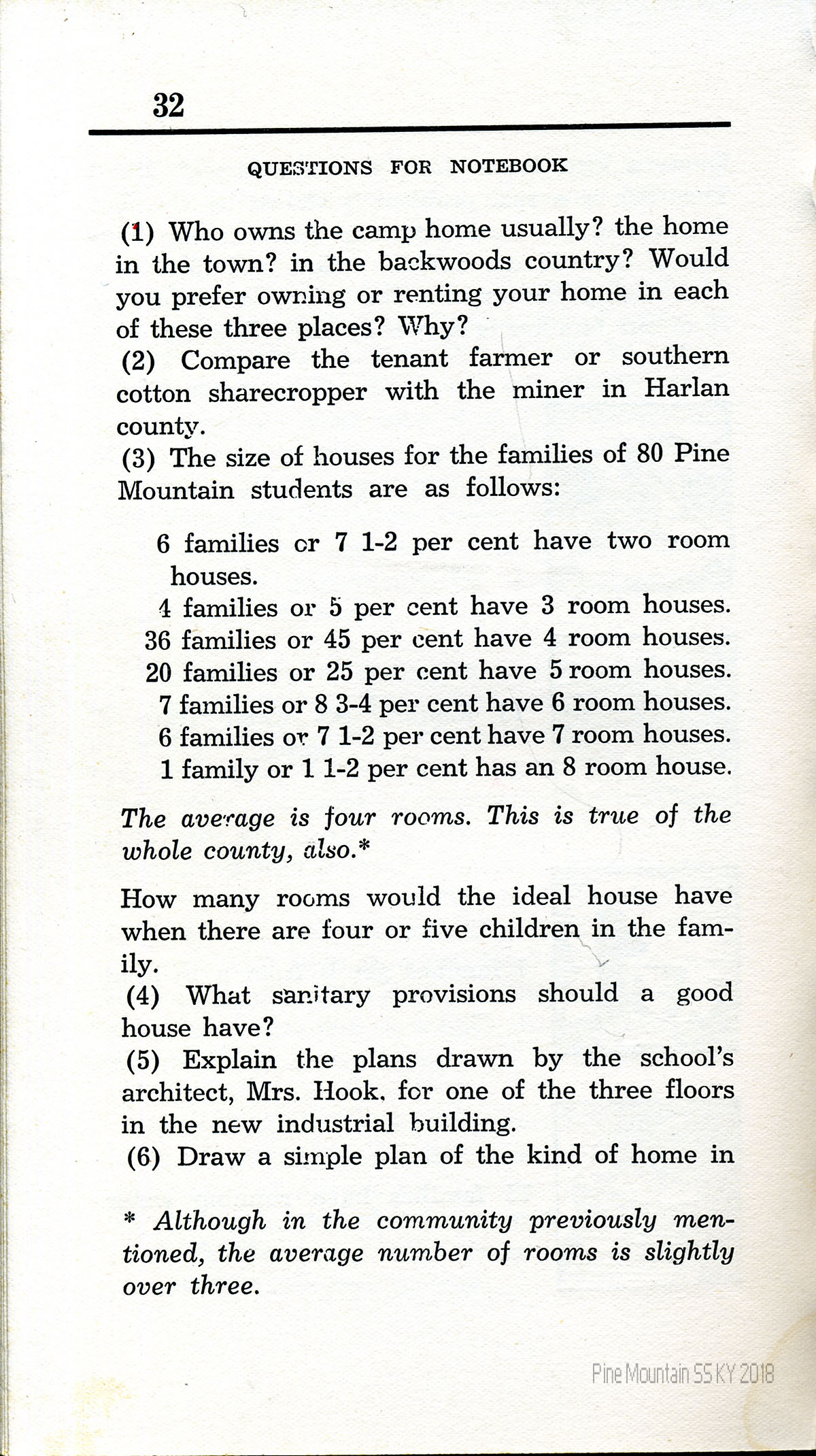 This is a tool for educating good citizens to engage their civic responsibilities. Today stand-alone civics courses rarely show up in the general high-school curriculum and certainly, few are mapped so carefully to their specific community. Today it is also rare to find any secondary course as compulsory and comprehensive as this small book which is focused on a cohort experience. All students at Pine Mountain were compelled to take the civics course during their Boarding School years. The course follows the developing county-wide educational goals were explored and ultimately integrated into the development of the Rural Youth Guidance Institute a county-wide educational planning initiative begun by Glyn Morris (PMSS Director 1931-1941).