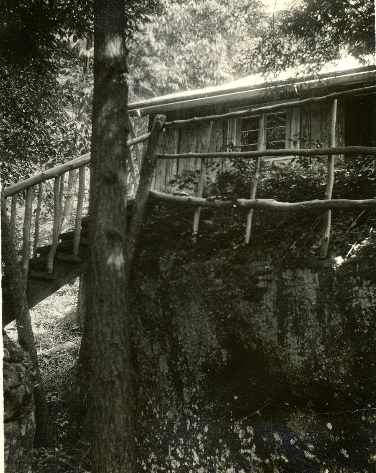 - Open House, home of Mary Rockwell Hook . View from front with rustic steps and bridge across rocks. hook_album_2blk__042.jpg