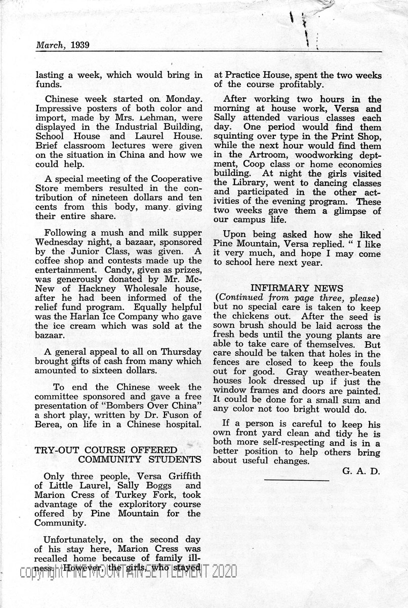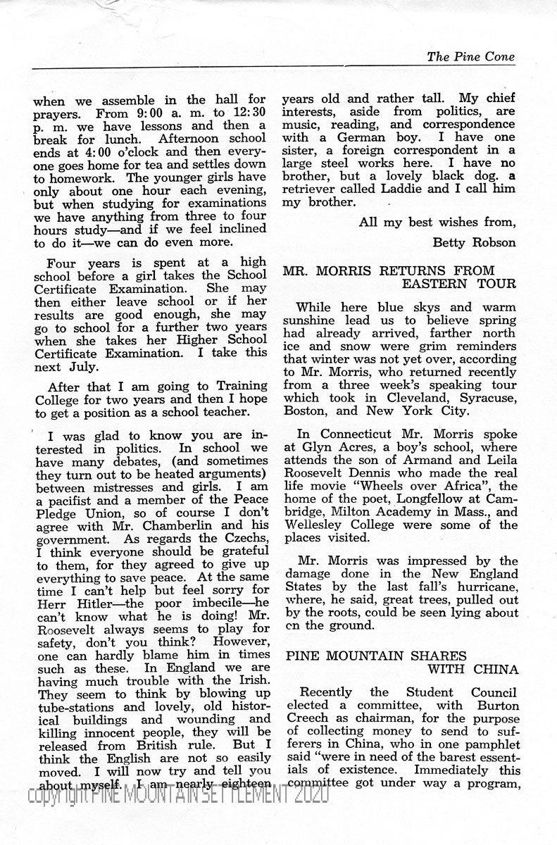PINE MOUNTAIN SHARES WITH CHINA – The Student Council elected a committee, with Burton Creech as chairman, to college money for “sufferers in China.”