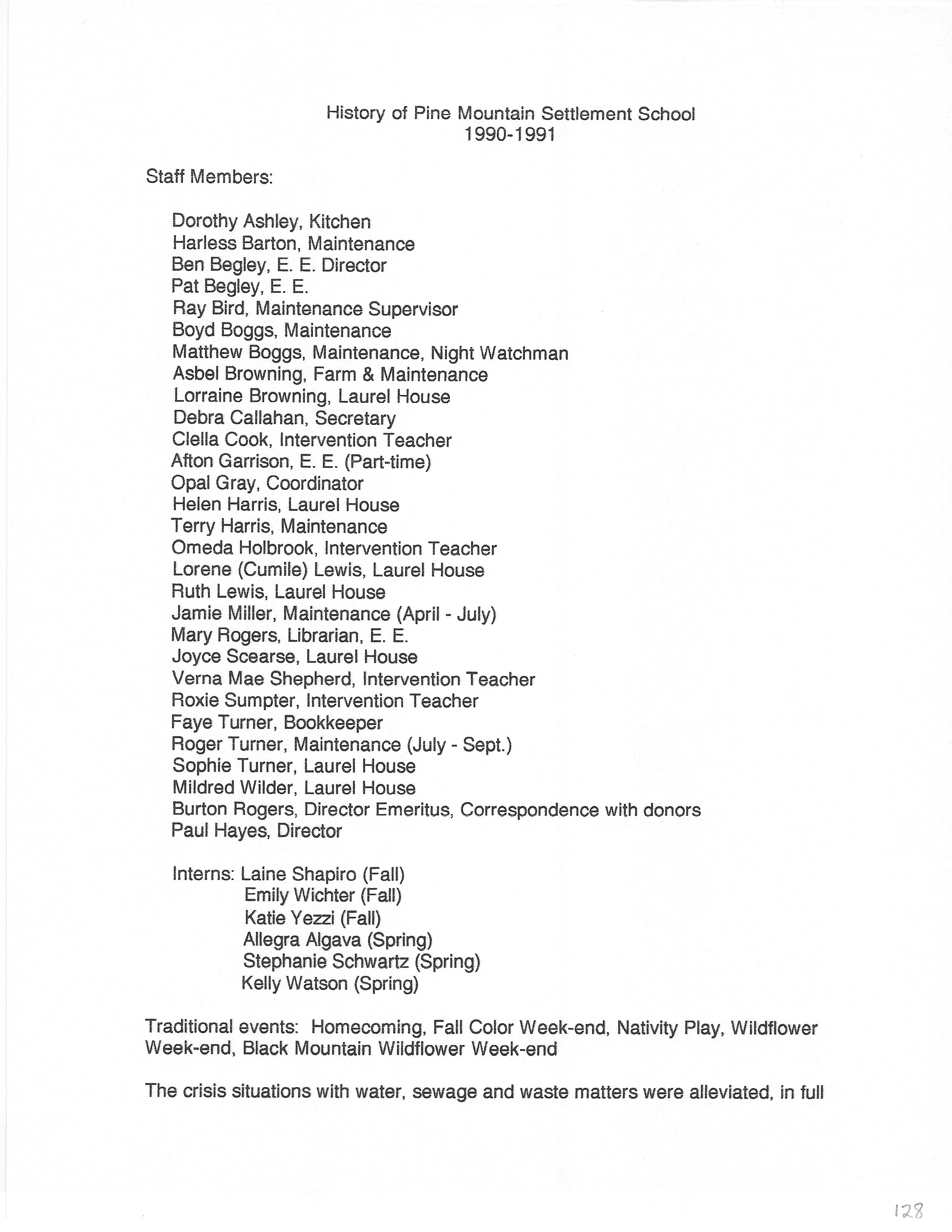 Tags: History PMSS summary 1990-1991, staff members, interns, events, Alpha Sigma Tau, Alumni & Friends Association, Burkhard Indian Artifact Collection, entrance fencing and sign, water systems, sewage treatment