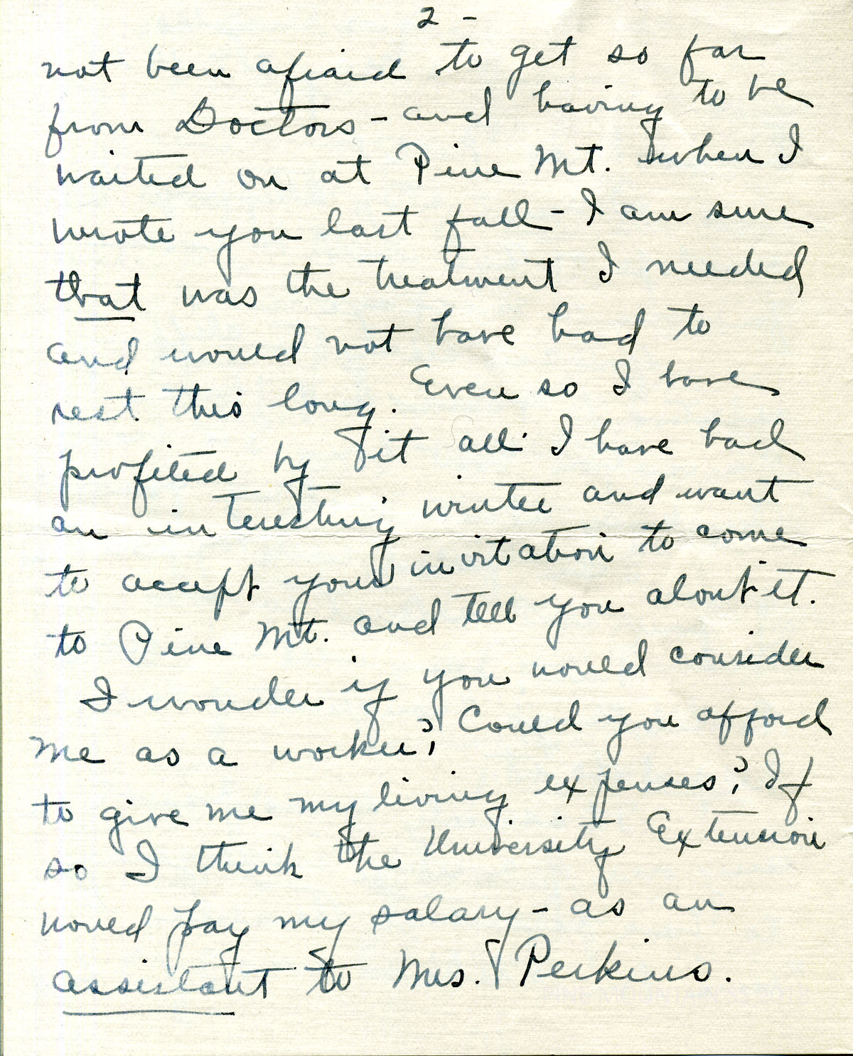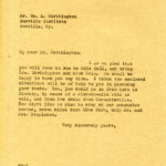 062 Willson, Mrs. C,C, Beaumont Inn, Harrodsburg, KY. from Katherine Pettit. August 2. “I am so sorry the plans for your coming this summer didn’t work out…”