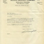 056 Wilder, Dorris, (regarding) Jellico Grocery Co., Wholesale Grocers, Harlan,KY, to Ethel de Long Zande. November 21. The company writes for a reference for Mr. Dorris Wilder from PMSS for a position as salesman with the company.
