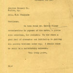 057 Wilder, Dorris, (regarding) Jellico Grocery Co., Wholesale Grocers, Harlan,KY, to Ethel de Long Zande. November 23. Mrs. Zande replies with a reference for Dorris Wilder and notes that he is slow but reliable and has a good deal of character and initiative … She believes “he would be a satisfactory salesman.”
