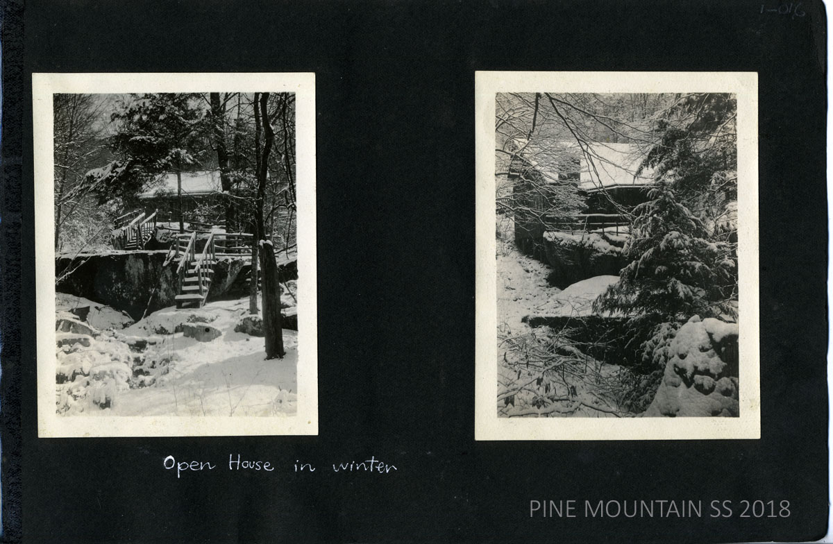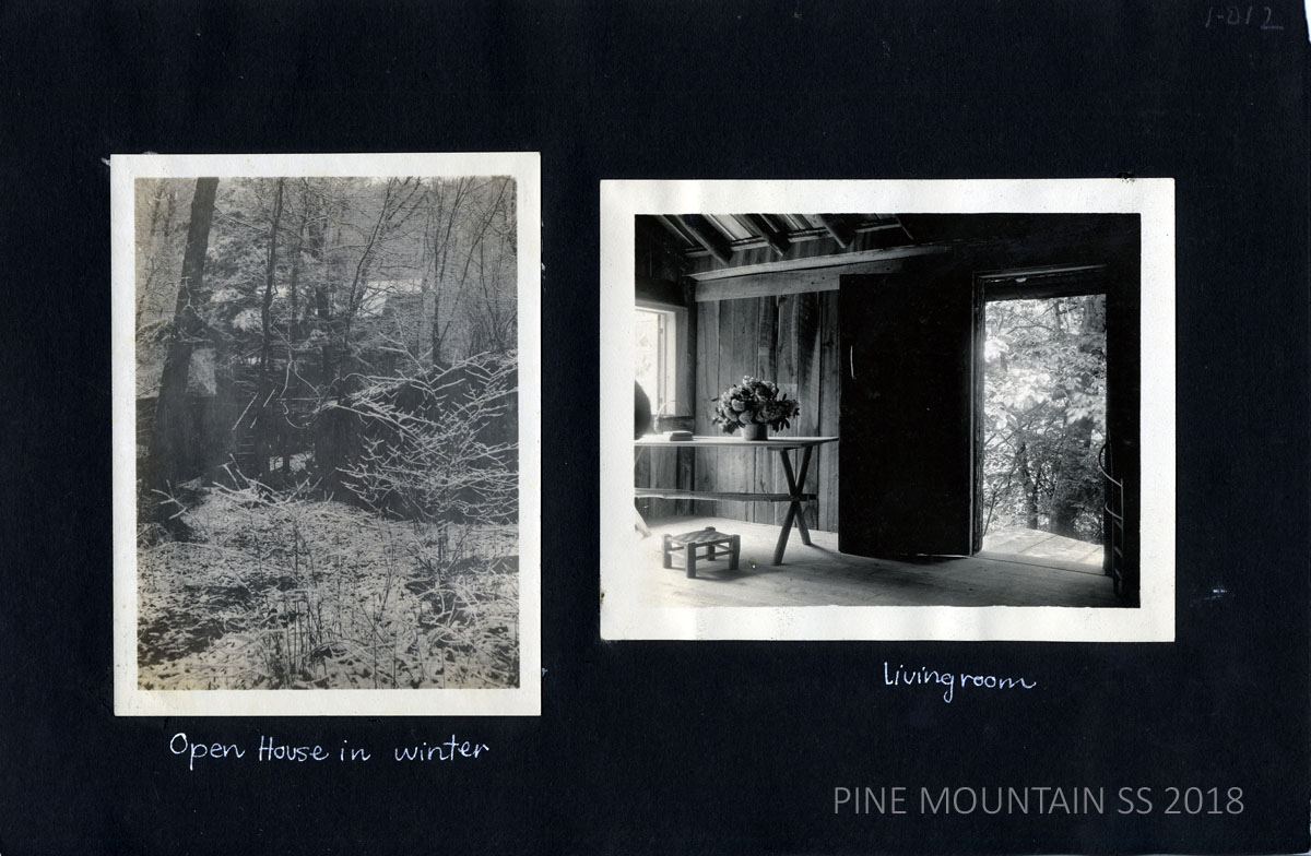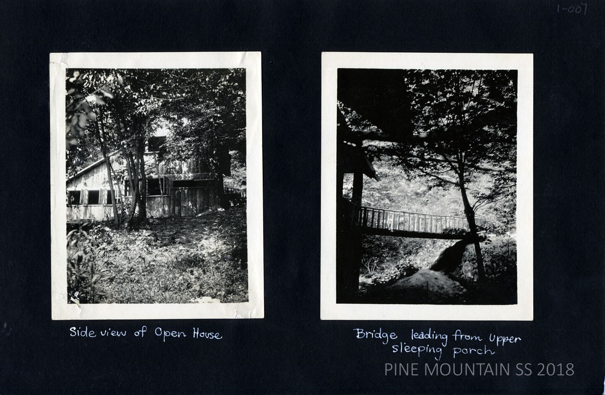 The Ethel McCullough Photograph Album opens with a mix of old and new images. The largest aggregate of photographs are those taken of Open House, the unique building designed by Mary Rockwell Hook for her use and for the use of others at the School. Other photographs center on the satellite settlement at Line Fork and various students and staff who worked with Ethel McCullough.