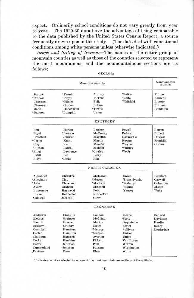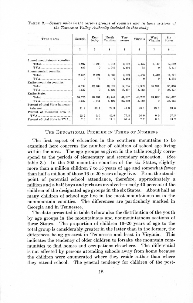 The mountain area of the Southern States has recently aroused unwonted attention on the part of the people of the United States. That economic conditions were unsatisfactory; that social services, including education, were wholly inadequate; and that these conditions, with the isolation prevalent in mountain sections, combined to set the people of these areas apart from normal farming communities, has long been a matter of common knowledge.