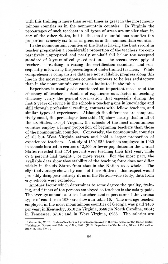 TAGS: Education in the Southern Mountains; W.H. Gaumnitz; Katherine M. Cook; Bulletin 1932, US Department of the Interior; rural education problems;
