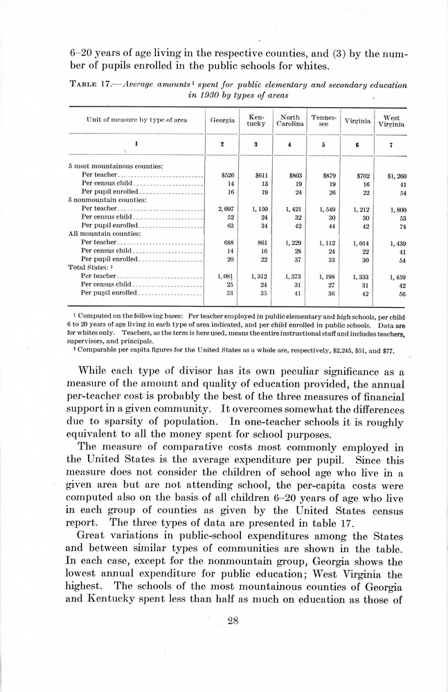 Definite undertakings looking toward rehabilitation on a region-wide scale were not, however, until recently, seriously contemplated. The Federal Government, in the establishment and maintenance of the Tennessee Valley Authority, has now entered the region with plans for reconstruction of at least a large part of the area on an extensive scale. Interest in education, as perhaps the most important of the social services so long inadequate, motivated this study of educational conditions in the area. It is believed it will serve a useful purpose in furthering plans for continuing the improvements in social conditions, now so auspiciously begun, through providing authentic information not hitherto available.