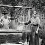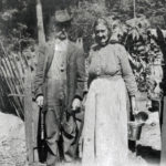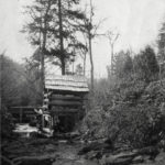 - 051 Uncle John Fiddler and Aunt Luisa; A log from Sawmill goes past Big Log House.