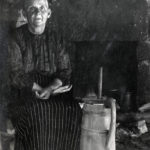 - 059 Uncle Calvin Nolan and Aunt Sarah; Aunt Sal at her loom in her pioneer home [Creech Cabin]; snow