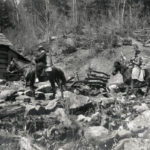 - 051 Uncle John Fiddler and Aunt Luisa; A log from Sawmill goes past Big Log House.