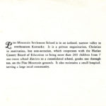 Pine Mountain Settlement School is in an isolated, narrow valley in southeastern Kentucky. It is a private organization. christian in motivation, but non-sectarian, which cooperates with the Harlan County Board of Education to bring more than 200 children from 7 one-room school districts to a consolidated school, grades one through ten, on the Pine Mountain grounds. It also maintains a small hospital serving a large rural community.