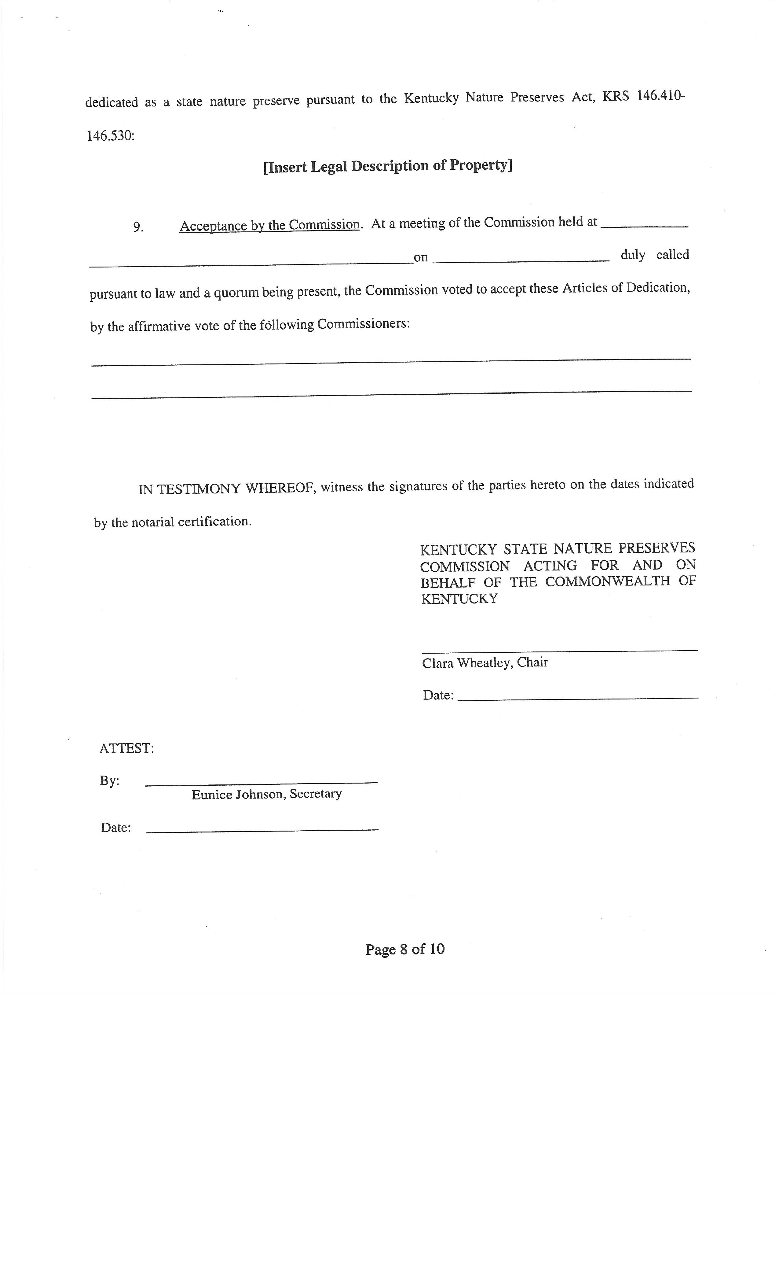 TAGS: Articles of Dedication; State Nature Preserve; Nancy Adams; KNSPC protection; Kentucky State Nature Preserves Commission; land use;