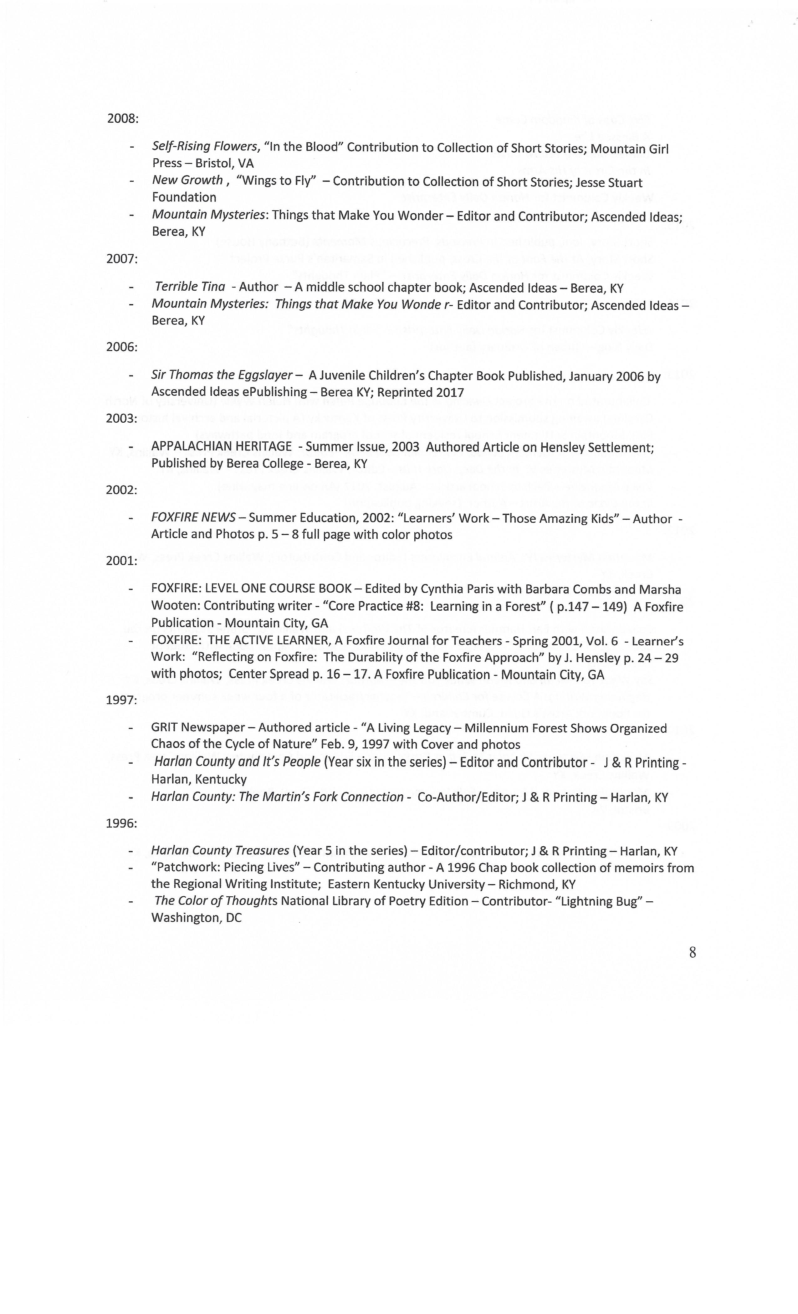 bickford_0002 – bickford_0010 – List of credentials on a resume, 1995-2018, 9 pages.