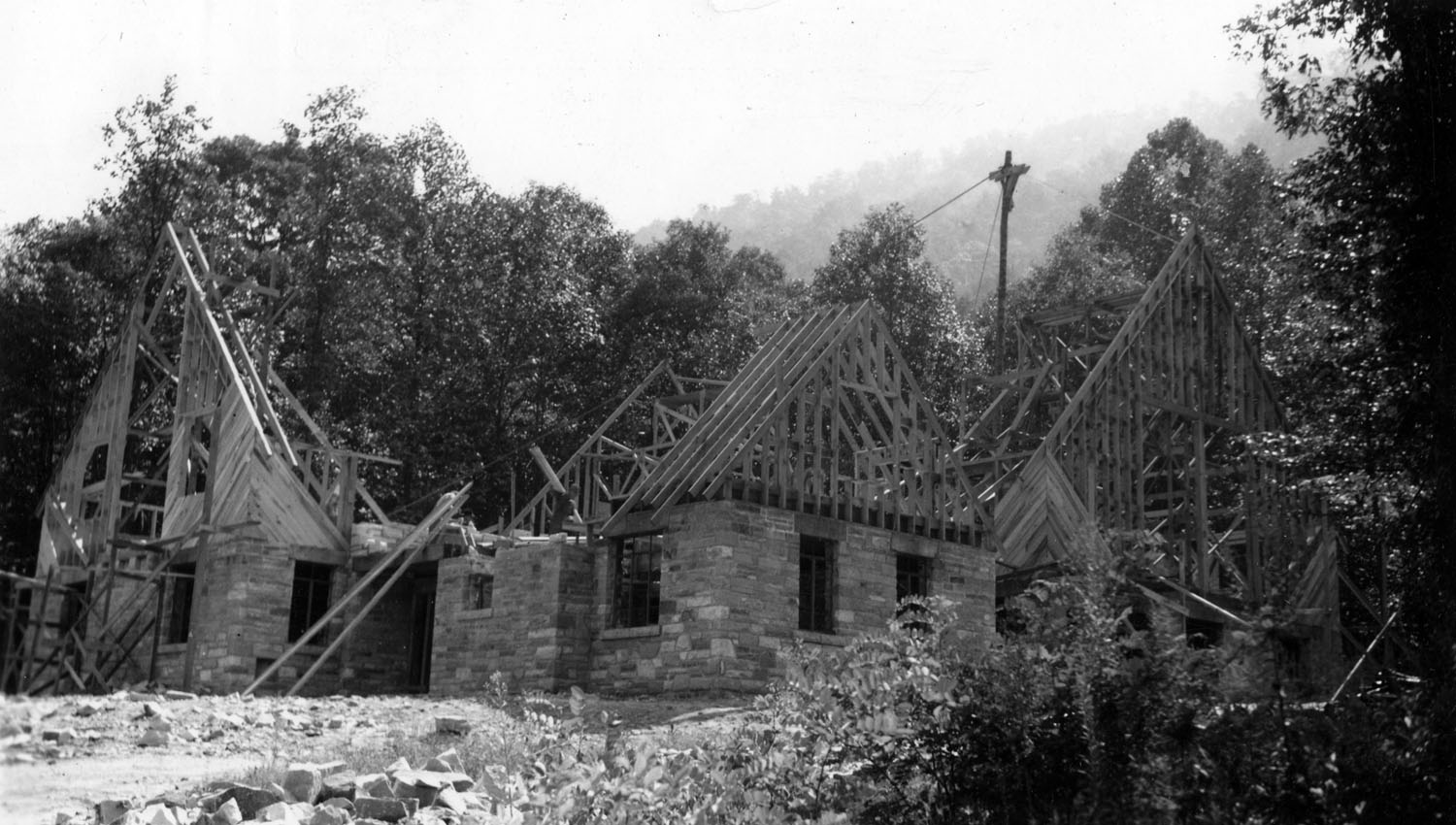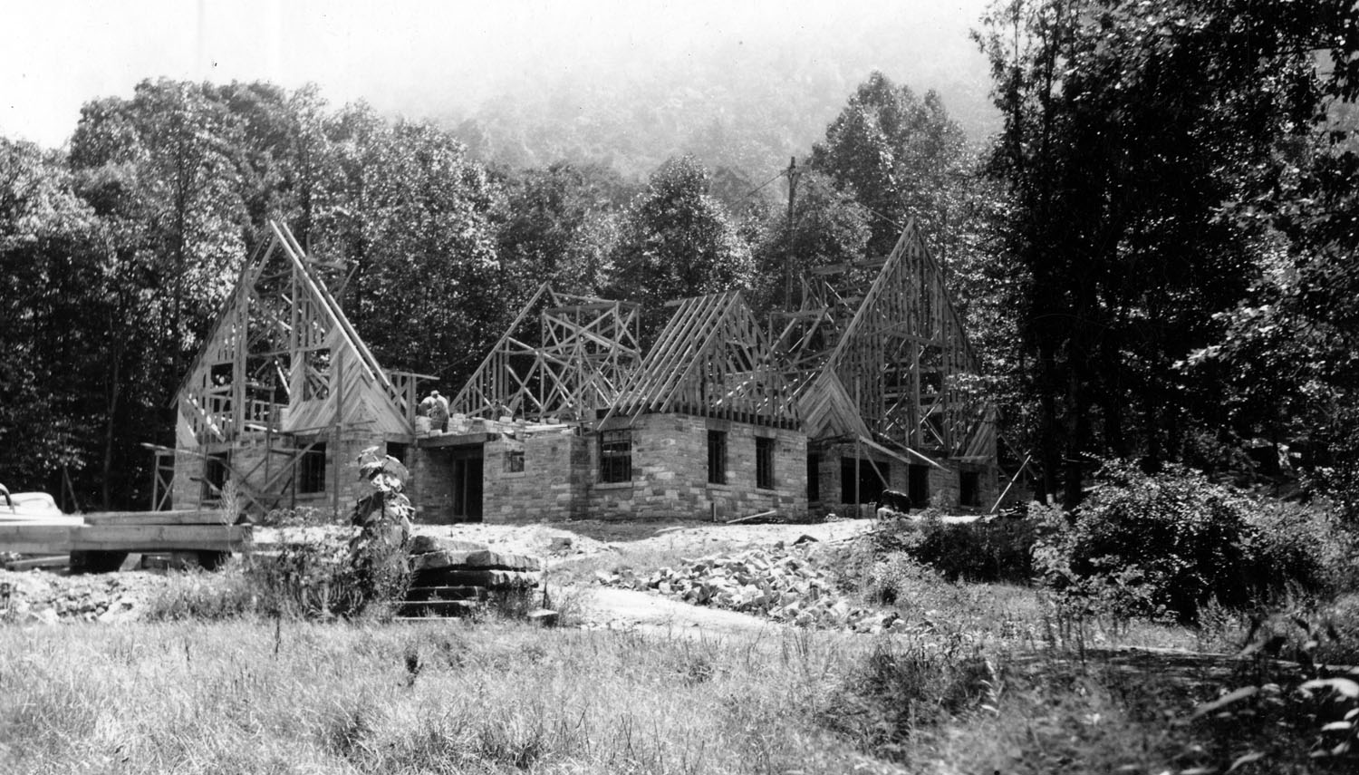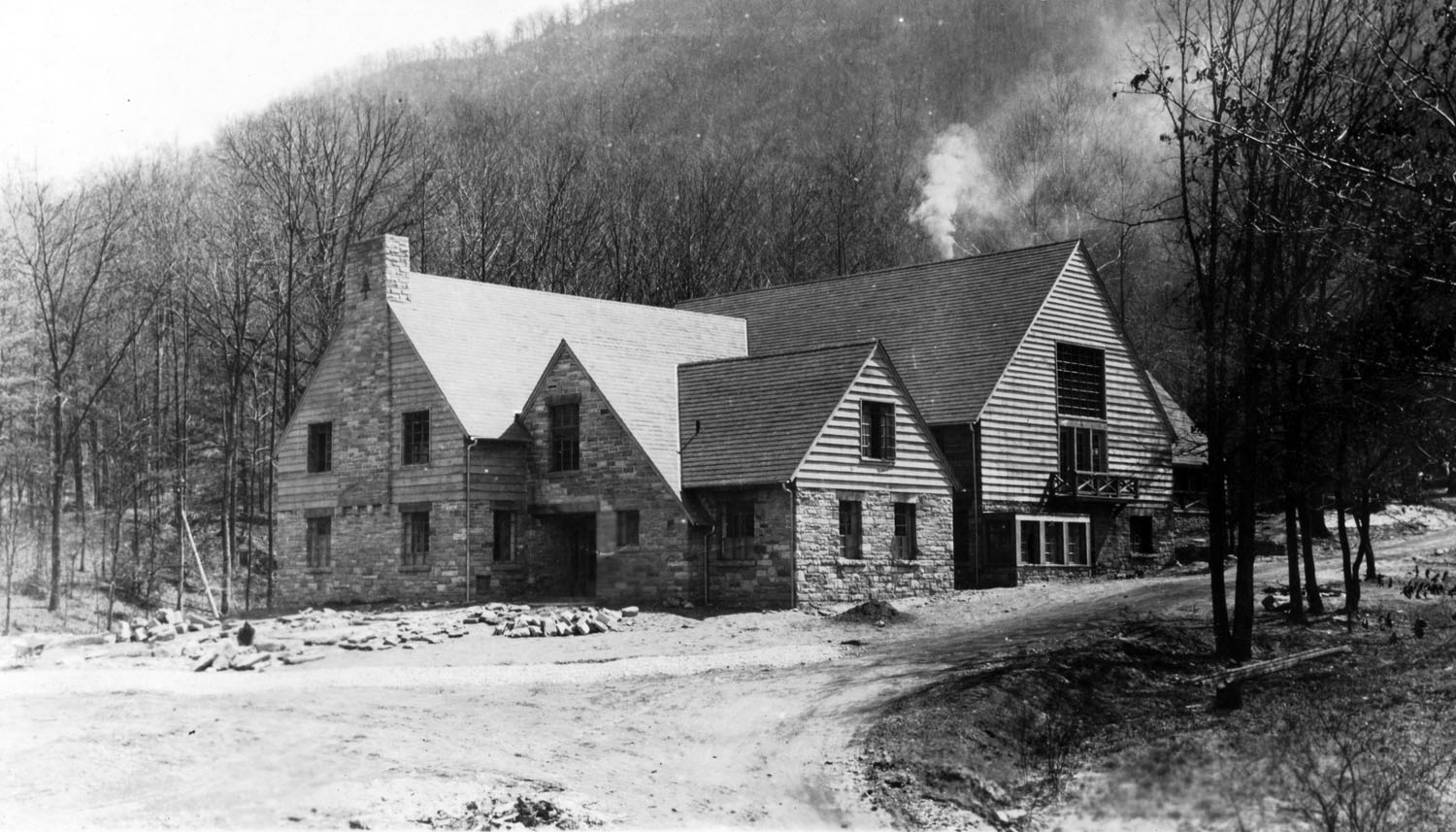 TAGS: Laurel House II; built environment; Pine Mountain Settlement School; Harlan County, KY; Mary Rockwell Hook; architects; Laurel House I; Arthur Dodd; Leone Sturgill; Theda Howard; Pine Cone newsletter; dining; fires; construction; rock wool; stonework; Daniel D. Martin;