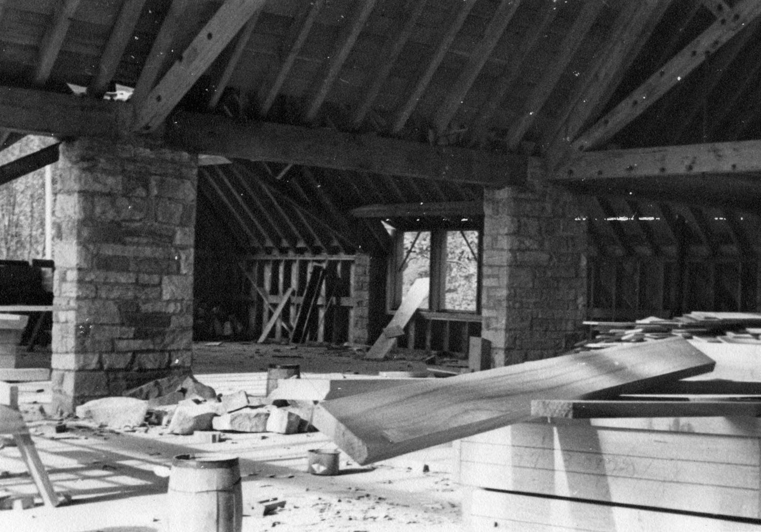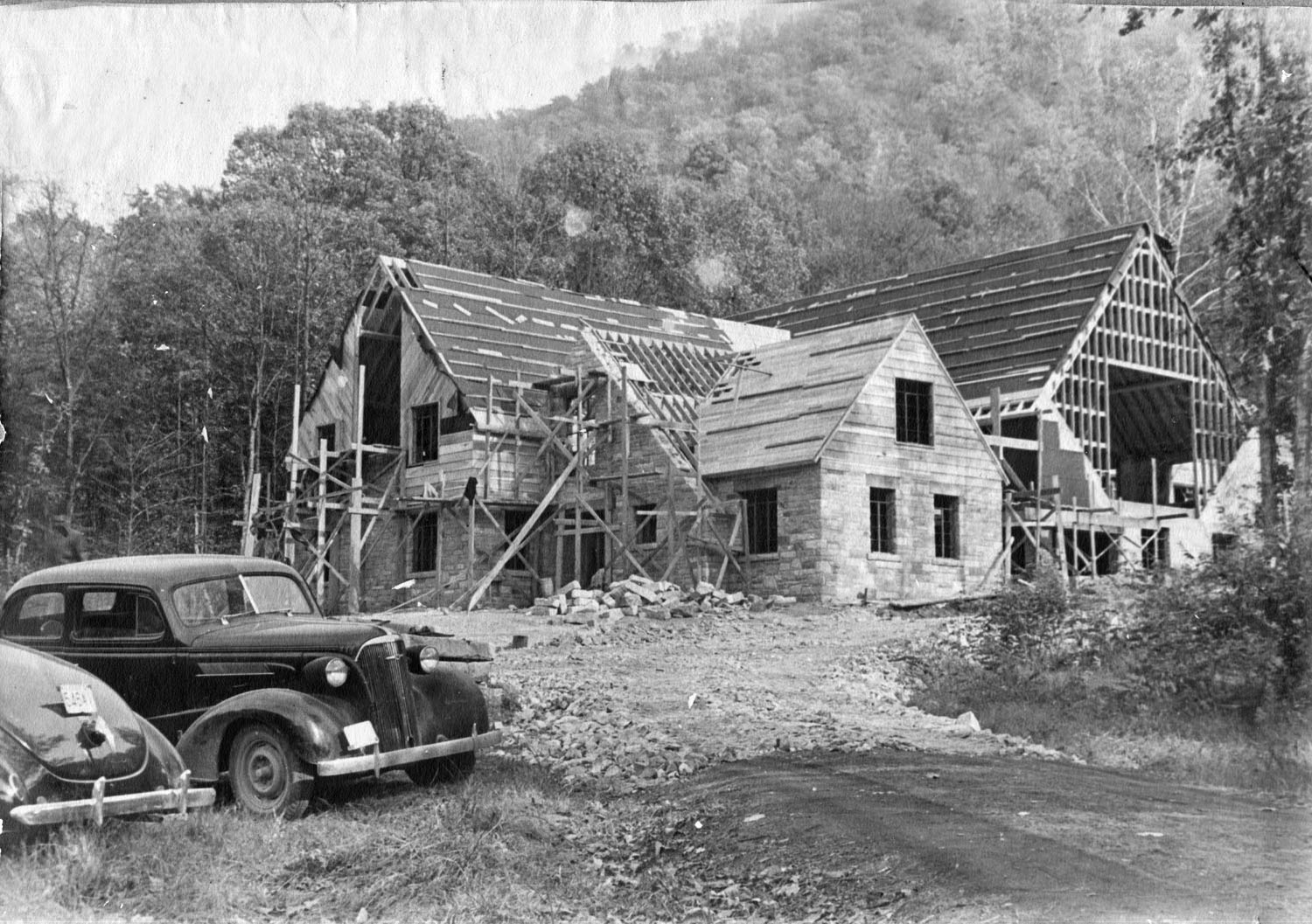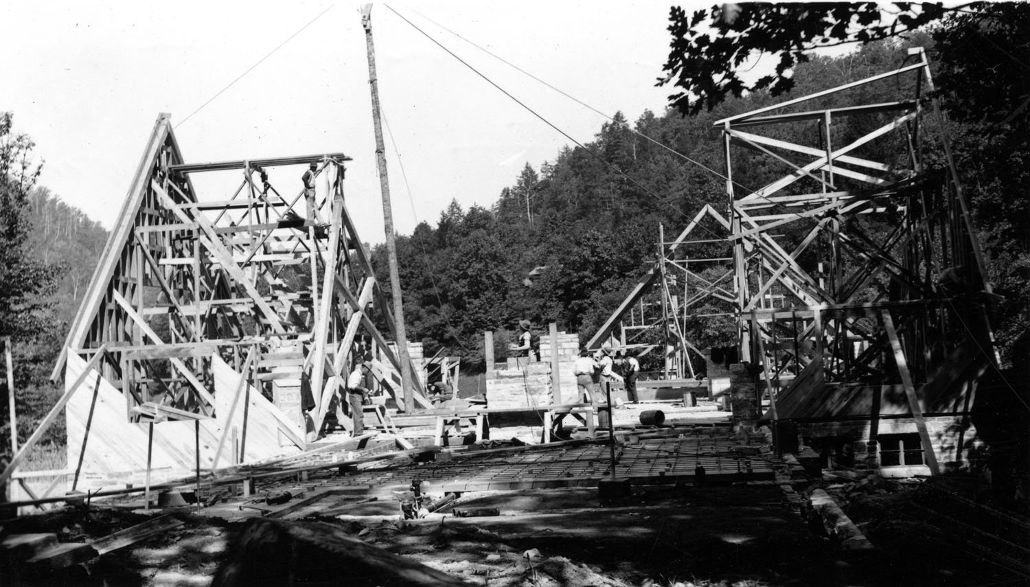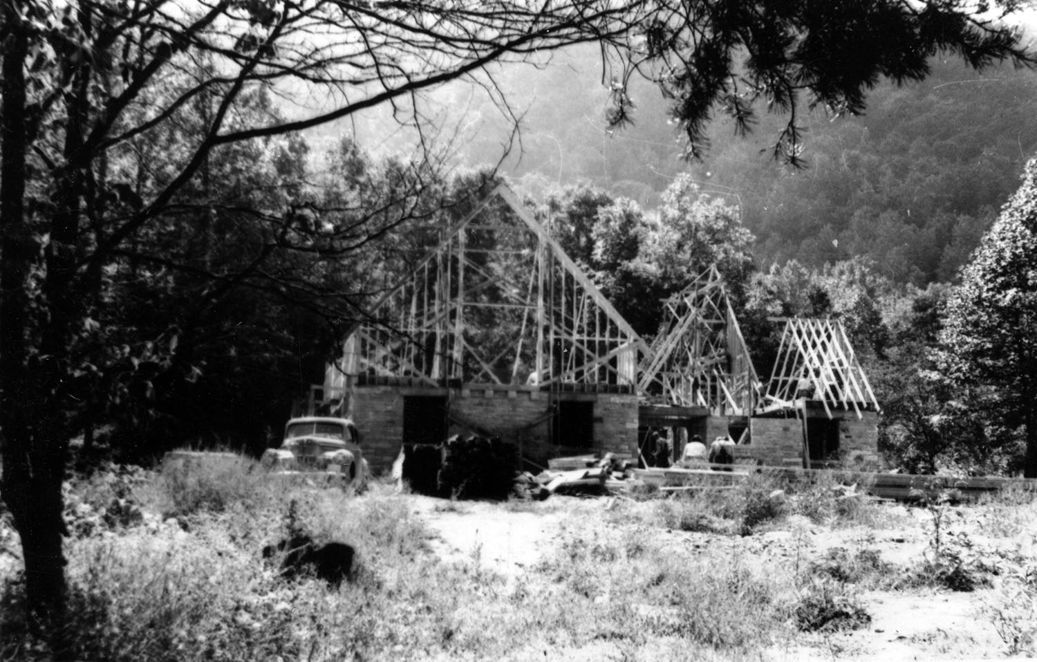 TAGS: Laurel House II; built environment; Pine Mountain Settlement School; Harlan County, KY; Mary Rockwell Hook; architects; Laurel House I; Arthur Dodd; Leone Sturgill; Theda Howard; Pine Cone newsletter; dining; fires; construction; rock wool; stonework; Daniel D. Martin;