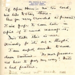 [008] through [008c]. March 19, (no year). Four-page letter to “Ethel” (Zande) from Hook, who asks for directions if she “should take a sudden notion to drop down to Pine Mt….” Tells of her tentative plans to visit; would like to stay at Open House; heard from KP as she travels toward Japan.