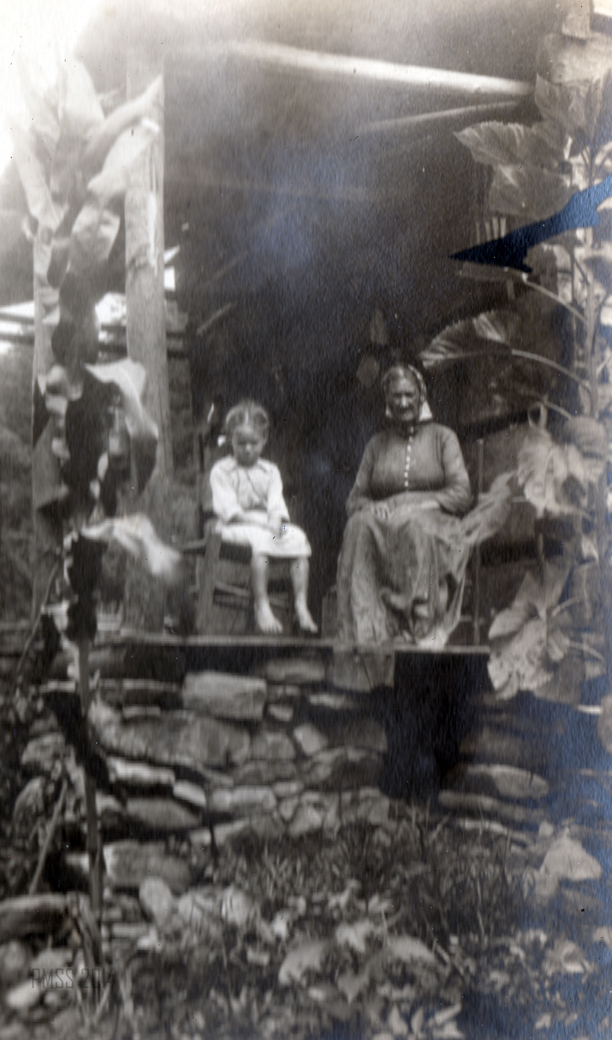 - Maya Sudo Album: Aunt Sal [?] and child on porch of cabin.[sudo_album_ 014c_mod.jpg]