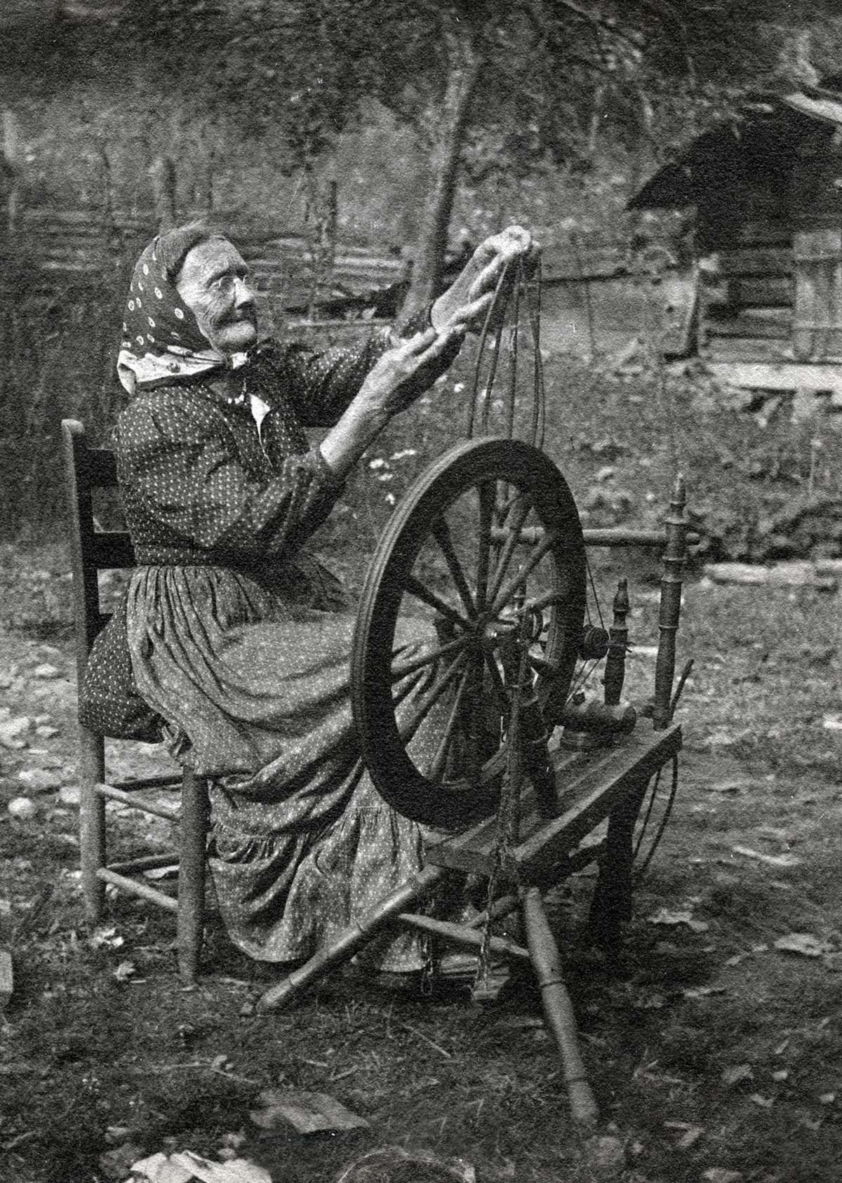 - Aunt Sal spinning at the small wheel to right. [Vl_37_1197a.jpg]