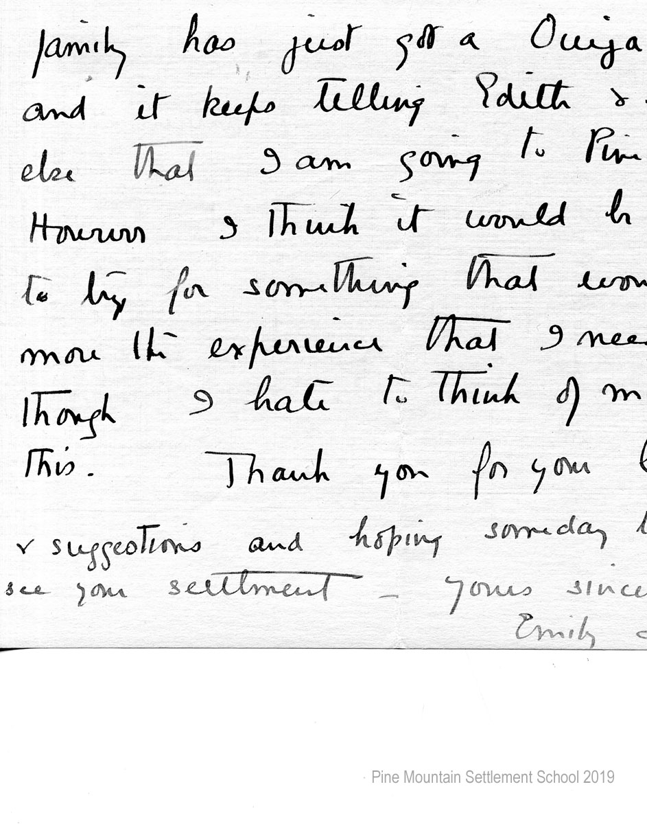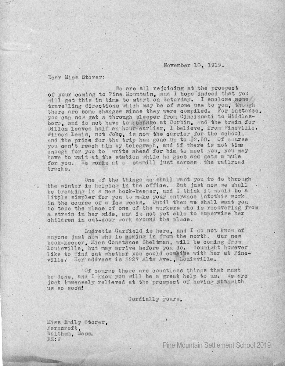 EMILY STORER CORRESPONDENCE provides a listing of the contents and images of the correspondence. The 1919 letters concern her application to work at Pine Mountain Settlement School. The letters dated 1925 through 1927 are mostly between Storer and Ethel de Long Zande after Storer’s time at Pine Mountain.