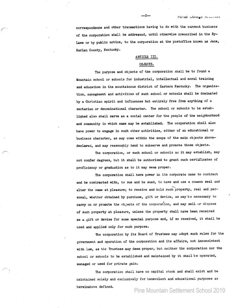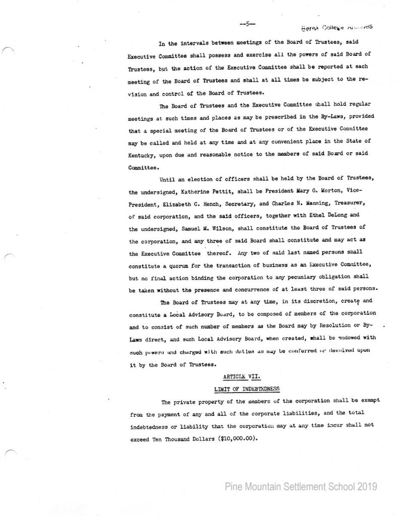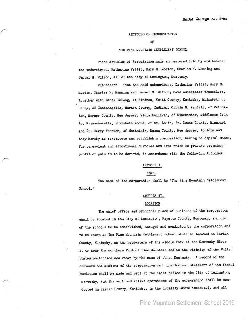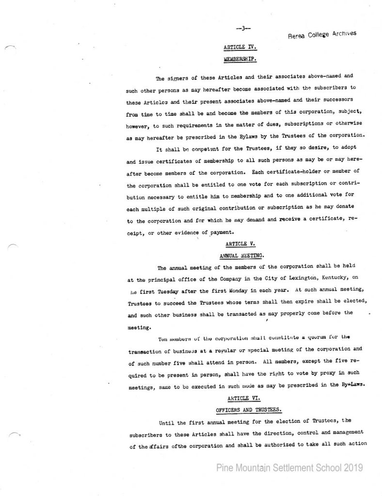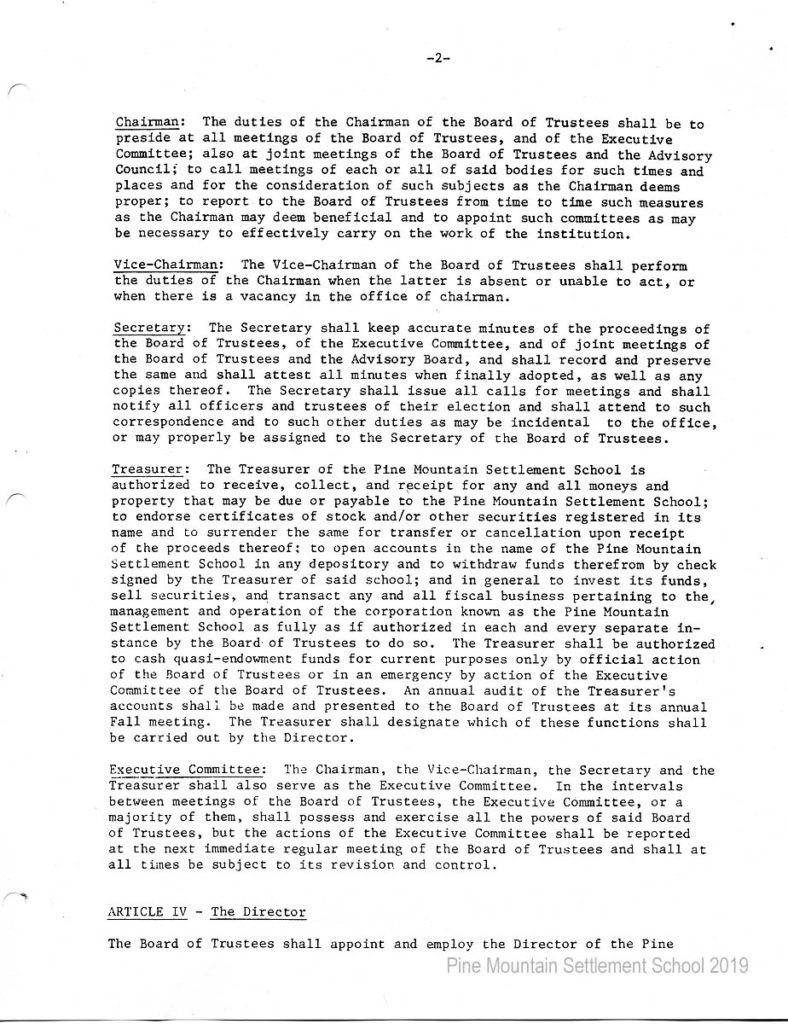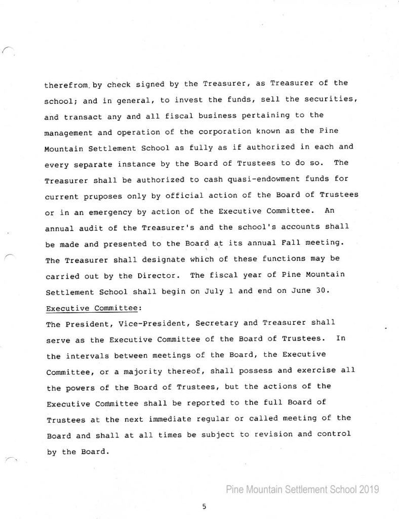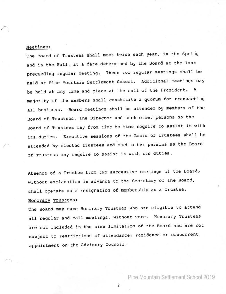In 1987 the Board of Trustees at Pine Mountain Settlement School successfully attempted to re-structure the Board. The following is their report with accompanying documents related to their Berea College affiliation.
