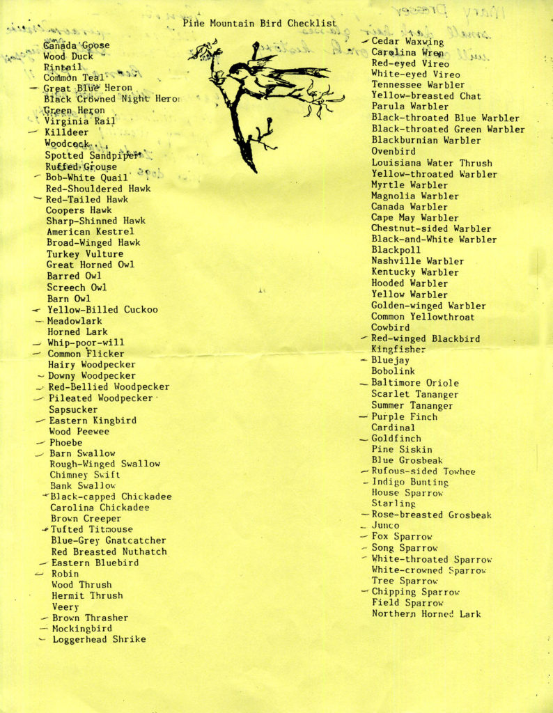 NOTE: Bird name with mark indicates common birds at Pine Mountain Settlement School.