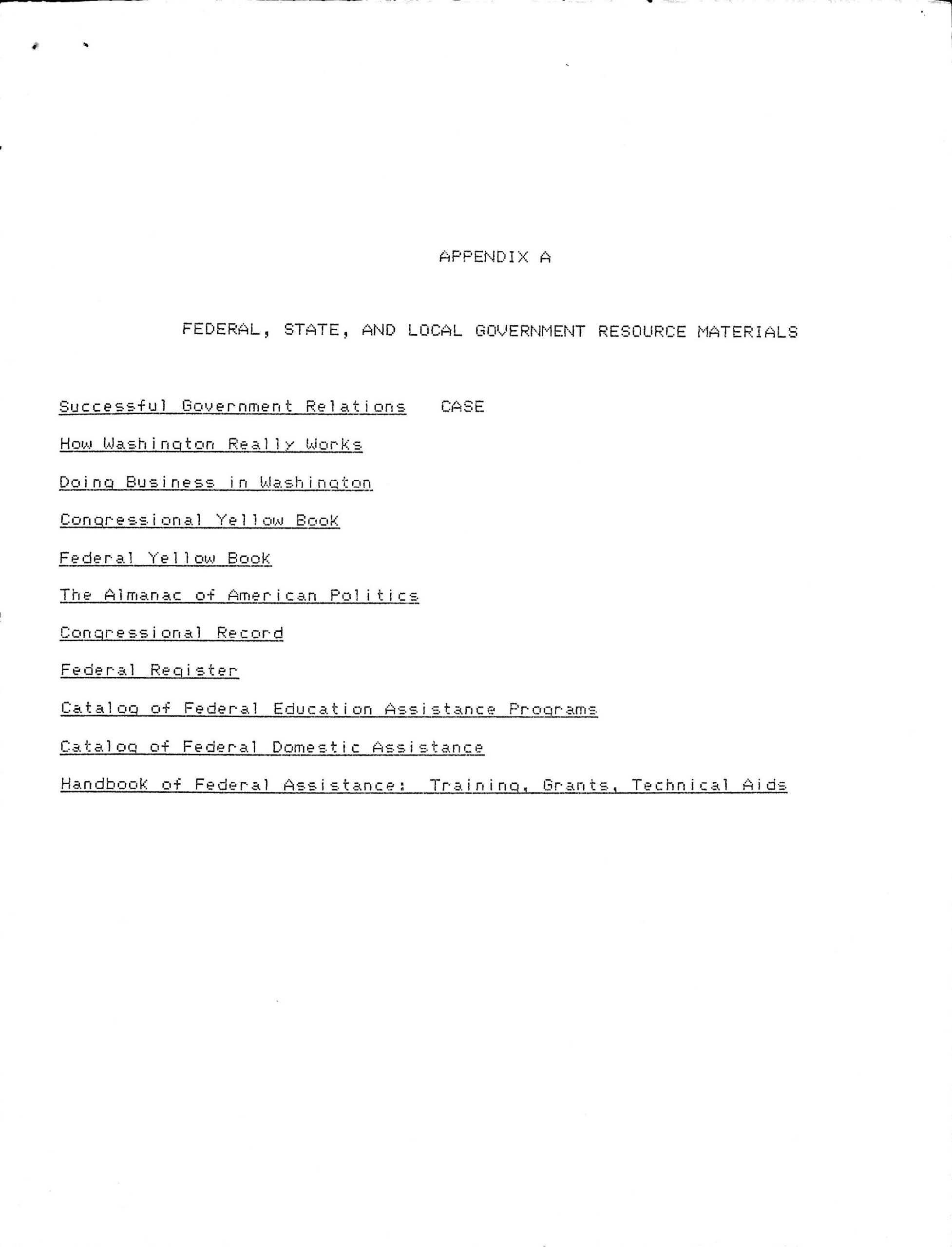 FEDERAL, STATE, AND LOCAL GOVERNMENT RESOURCE MATERIALS