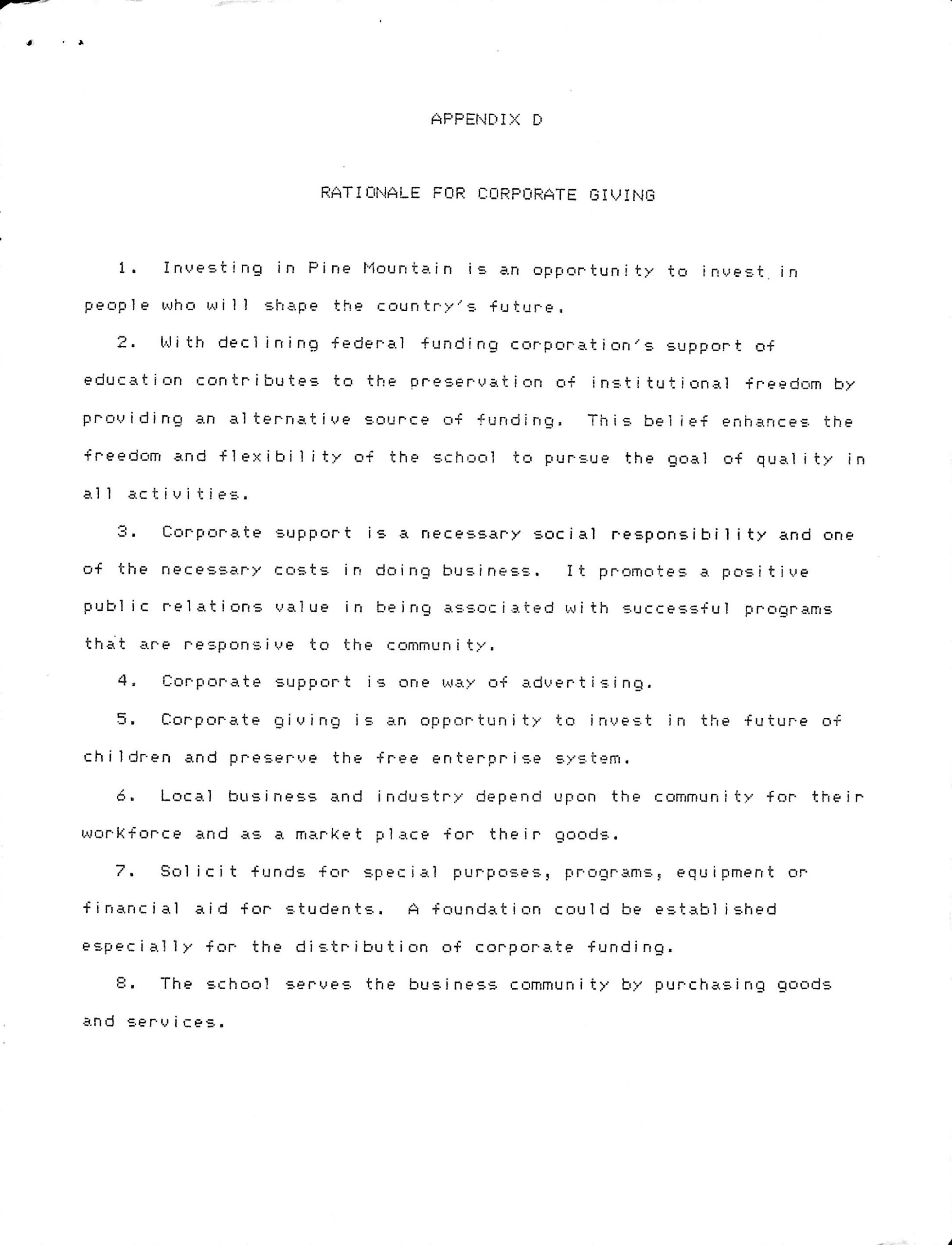 RATIONALE FOR CORPORATE GIVING
