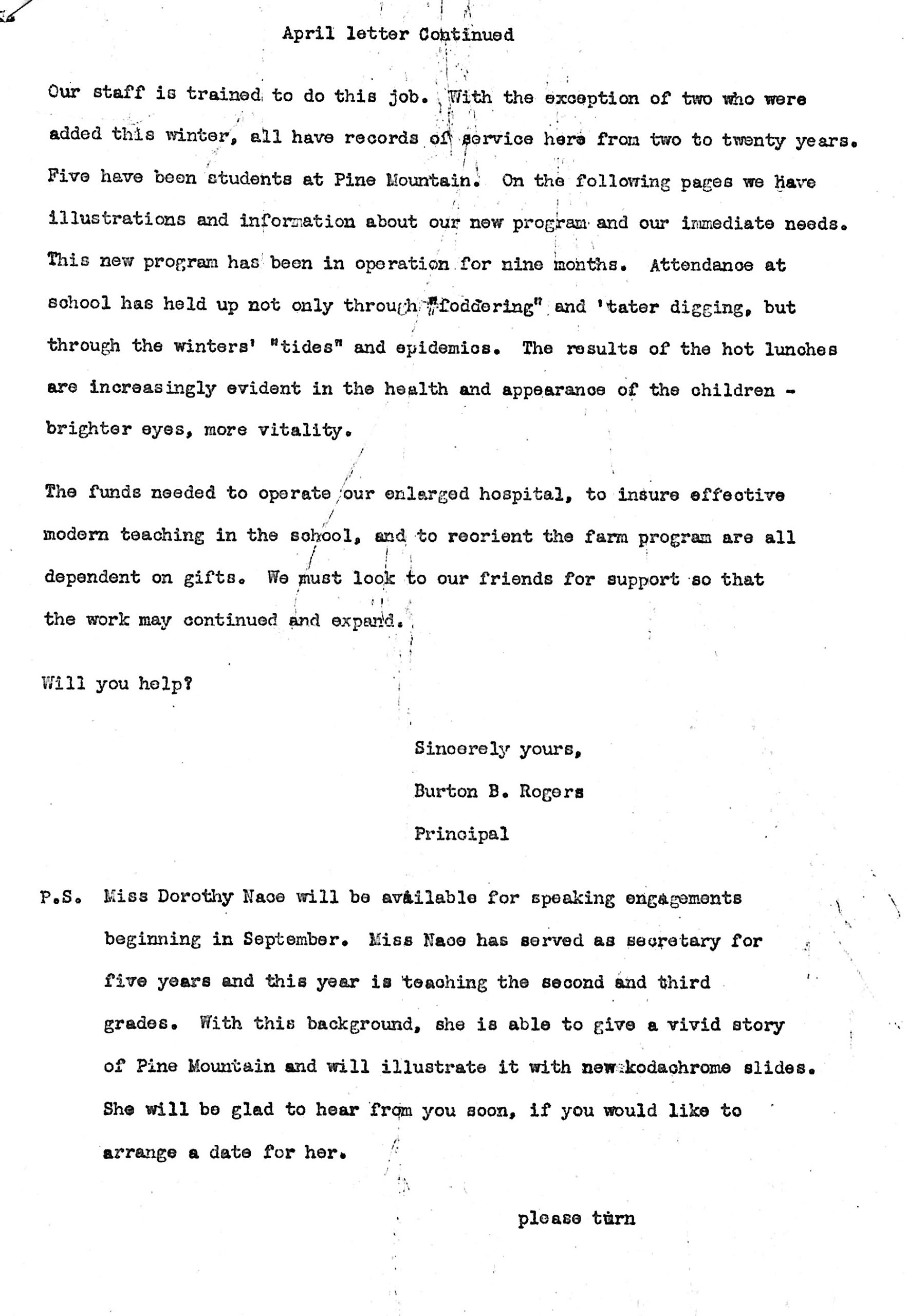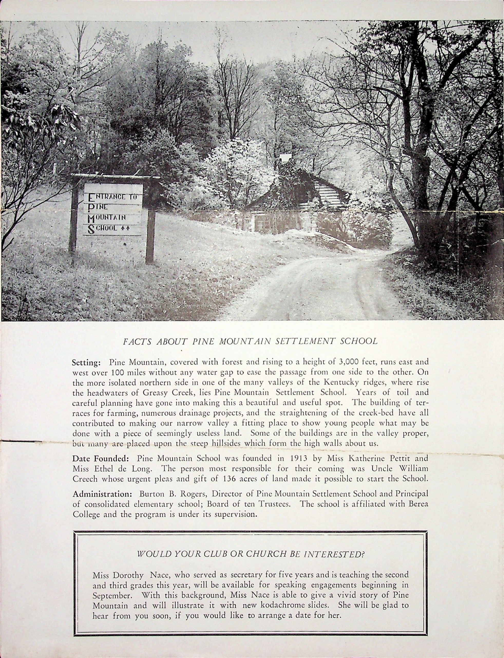 - Dear Friend Letter 1950. “Facts about Pine Mountain Settlement School.” [1950AprBurtonRogerstoFriendOfficial3.jpg]