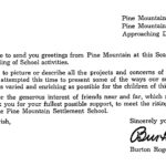 Rogers sends season greetings and encloses a “leaflet telling of School activities … [and] present[ing] some of the ways our small staff adapts to offer experiences as varied and enriching as possible for the children of this community.”