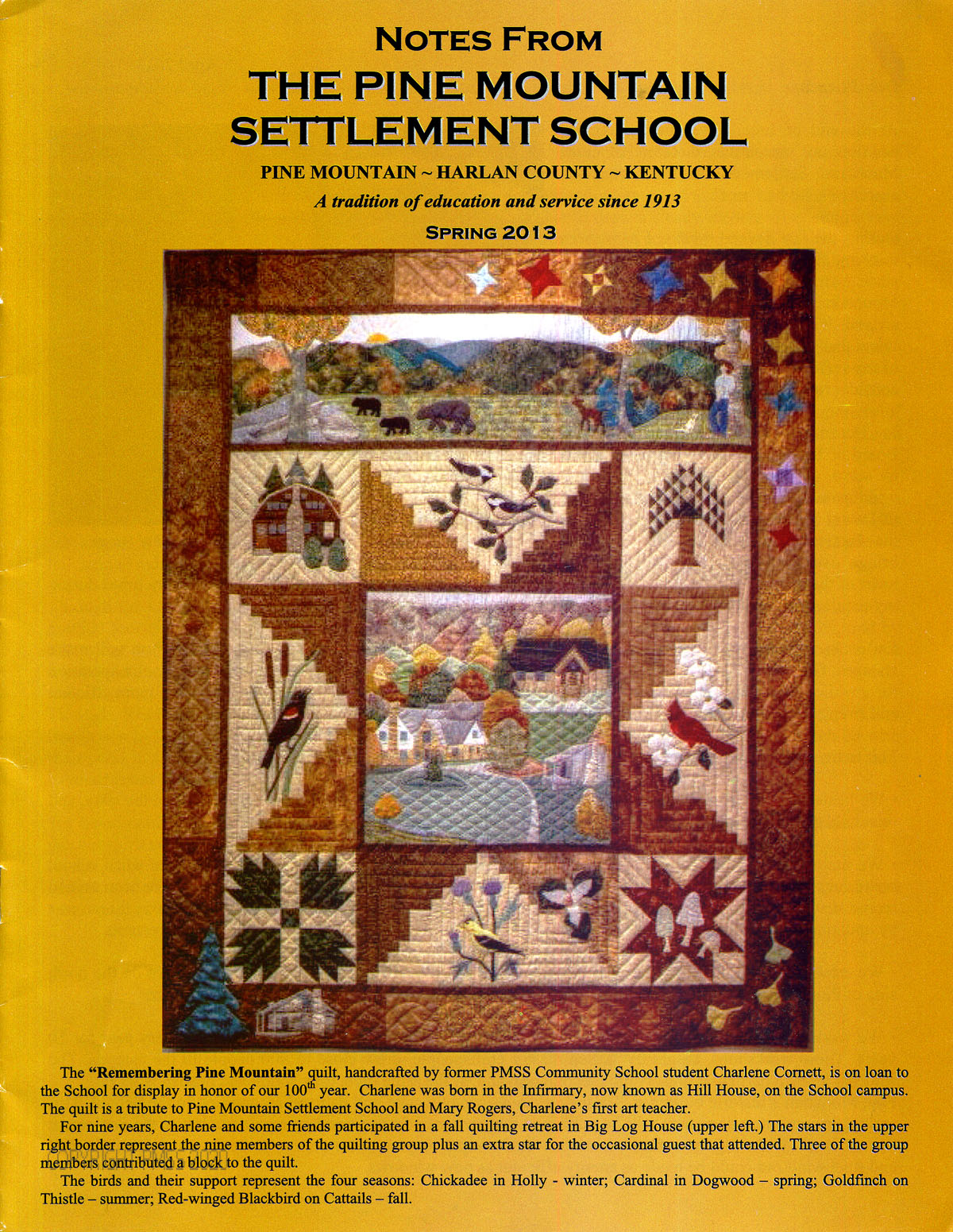[001] Cover. “A tradition of education and service since 1913” ; “Remembering Pine Mountain” quilt by Charlene Cornett ; Mary Rogers ;
