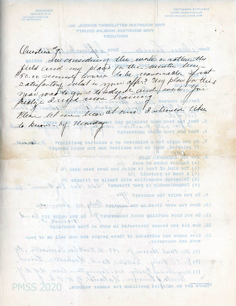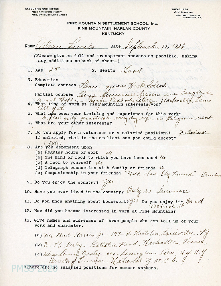 003a (Reverse side of Application Blank with Lewis’s answer to a question about salary.) “In considering the work or rather the field and my plans for the winter term — $50.00 seemed to me to be reasonable. If not satisfactory, what is your offer? My plan for this year was to go to school and work. You realized I need more training. …”