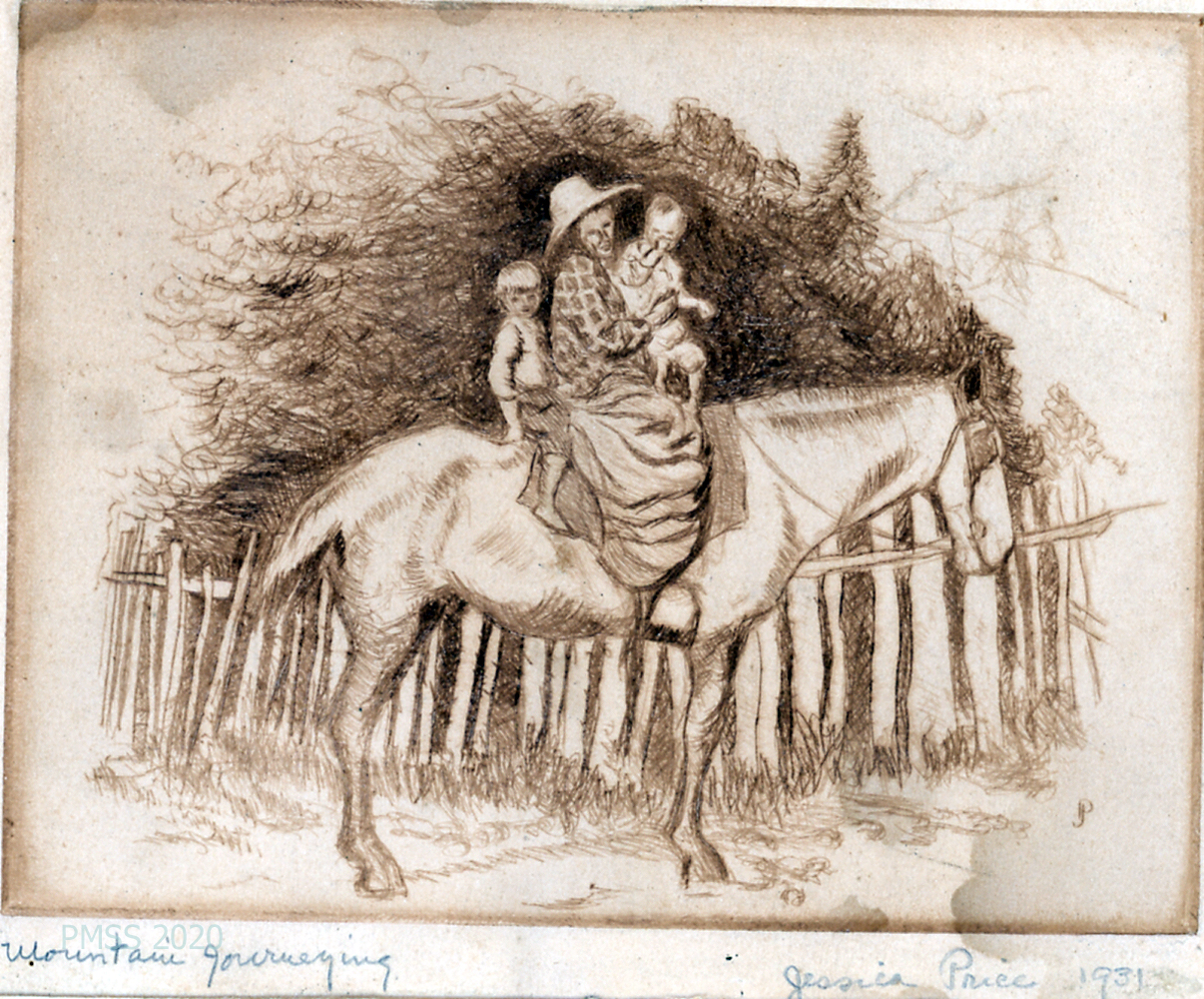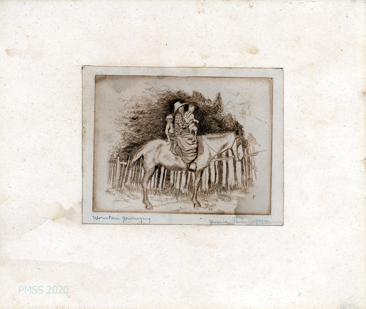 [021], [022], [022-1] “Mountain Journeying,” a print by Jessica Price, 1931.