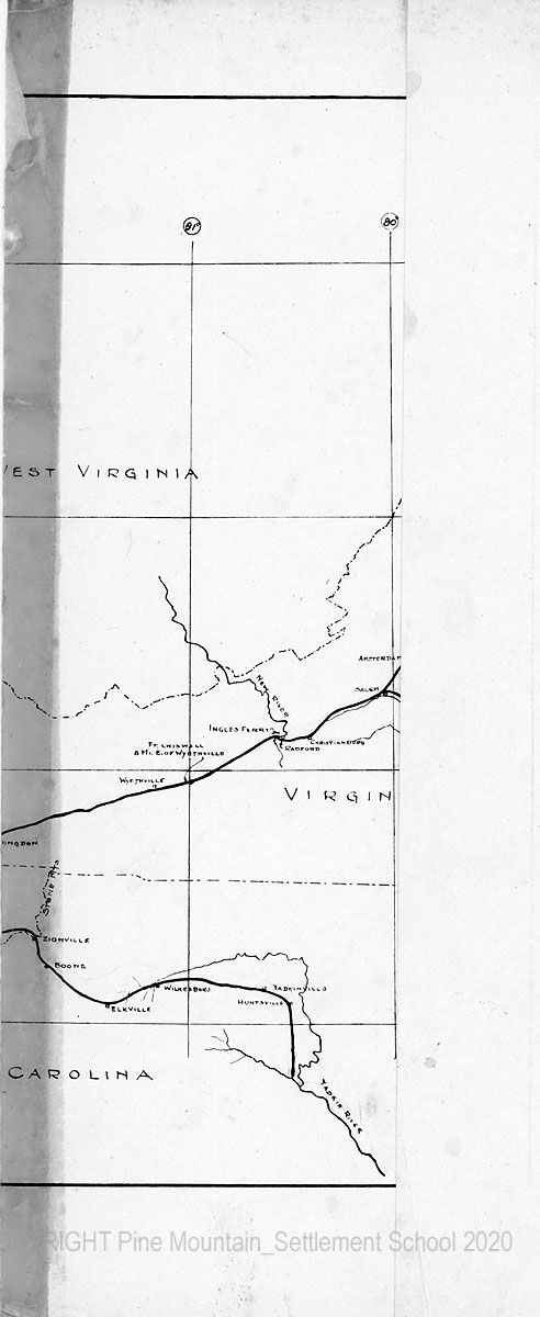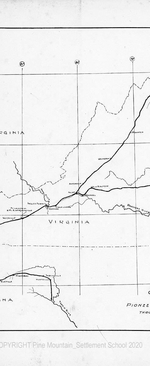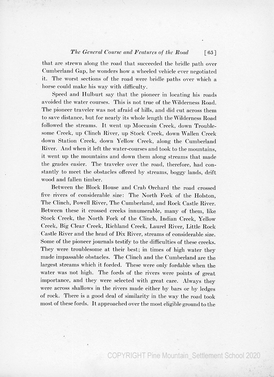 The location which I have given it has been based, for the most part, upon actual examination of the road itself. I have not attempted to make an extensive examination of historical manuscripts, but it has happened that while making this study I have come upon numerous documents, such as old surveys, deeds, and local maps of the road, and I have used some published records of the Draper Collecton. But most of the information has been gotten from personal examination of the road, or from conferences with residents of the various districts through which it passes.