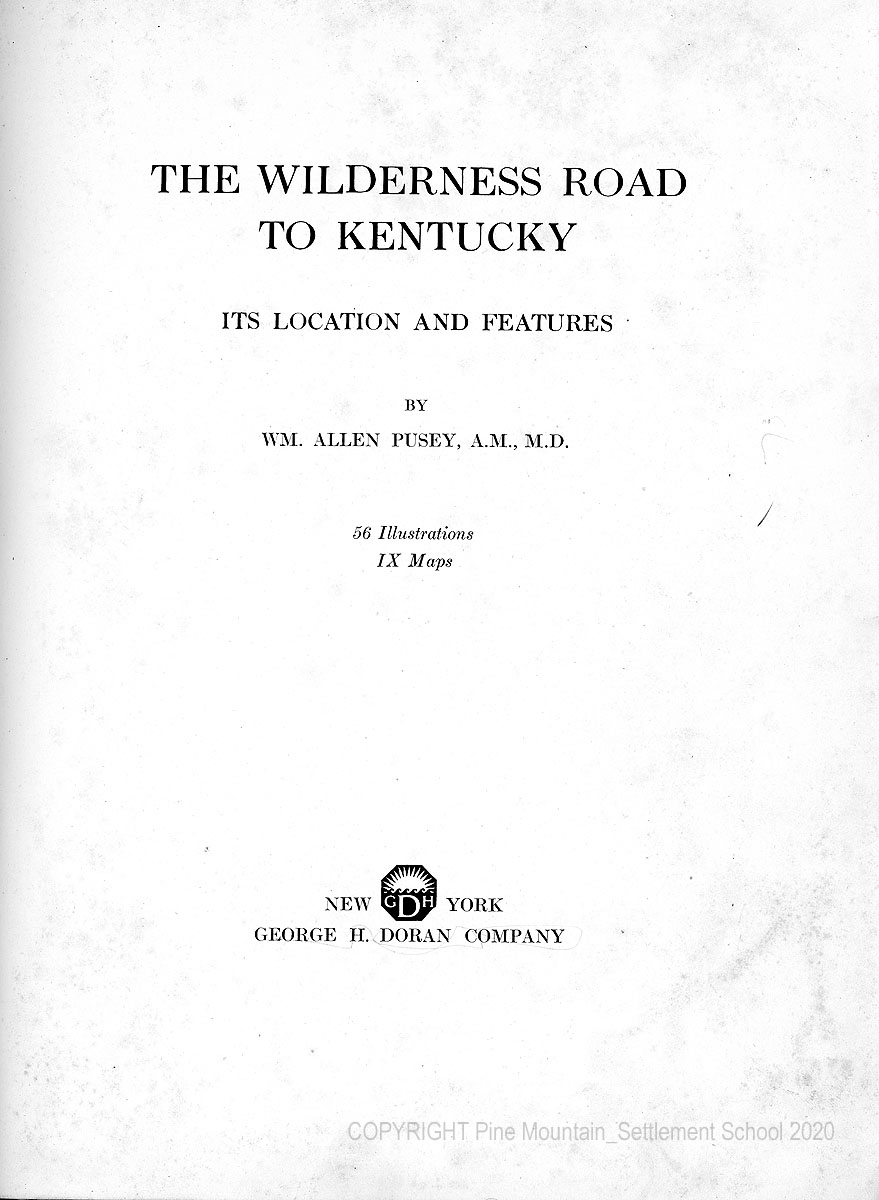 BOOKS Wm. Allen Pusey THE WILDERNESS ROAD TO KENTUCKY 1921 (Part II)