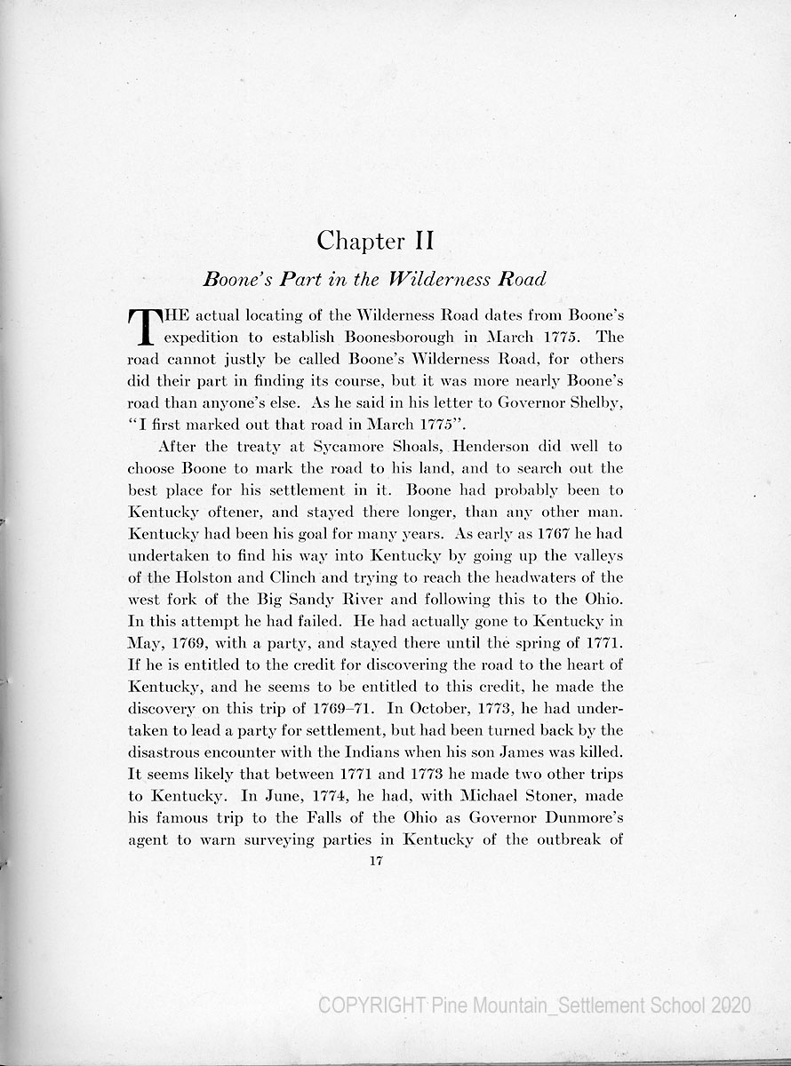 Chapter II Boone’s Part in the Wilderness Road