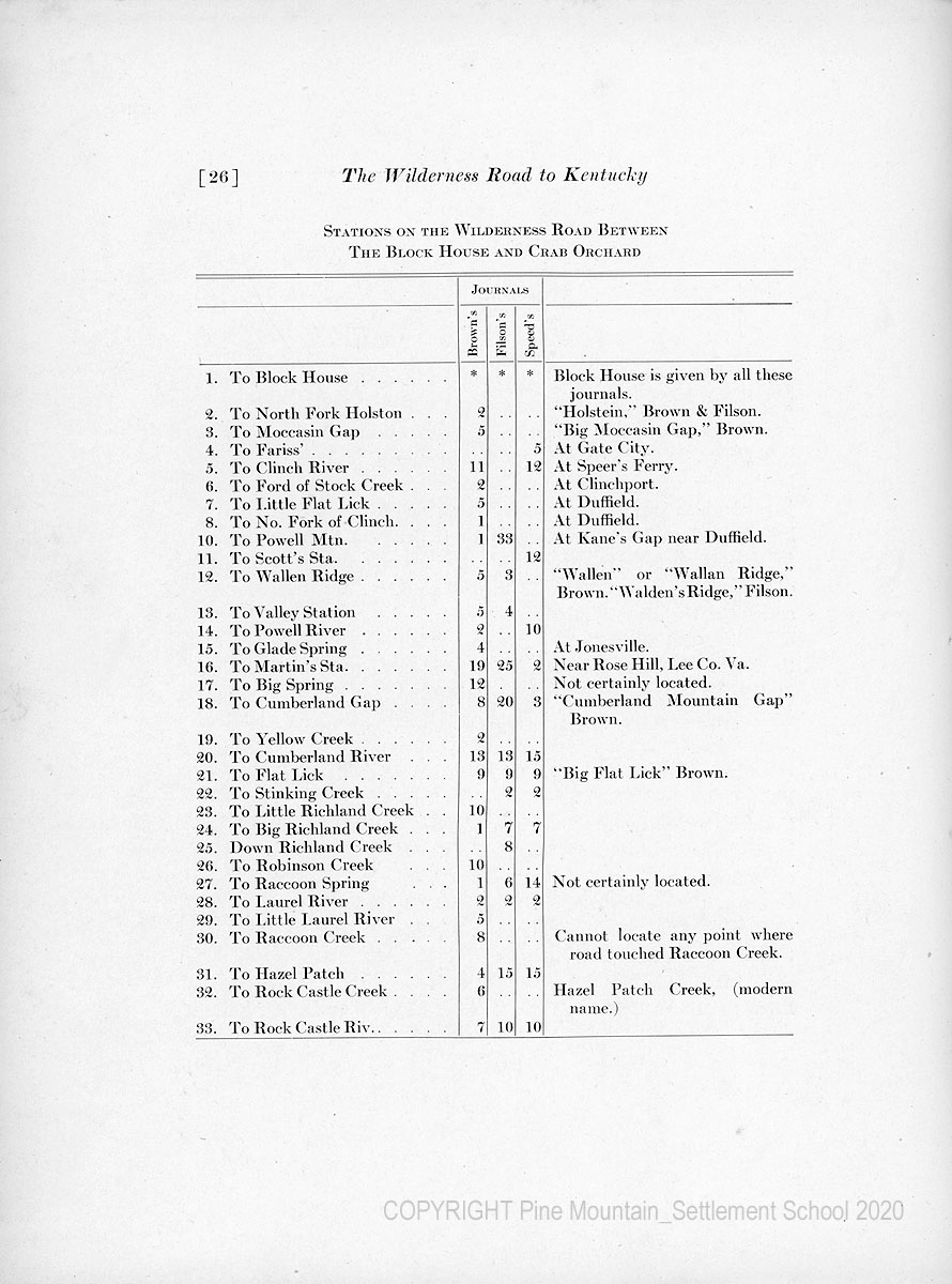 I think it may be claimed that the location herein given the road is approximately accurate for its entire length. From the Block HOusae i Virginia to the point where the road engters Laurel County, Ky., northwest of Barbourville, I believe the location of gth road is exact. Between this point and Brodhead, Ky., there are some unsettled questions in my mind concerning the exact location of the road; but even here the location of the road is, I believe, very nearly correct.
