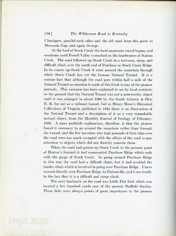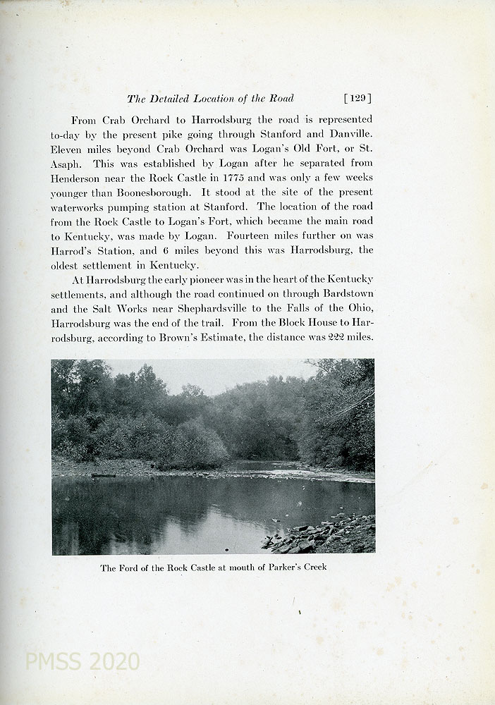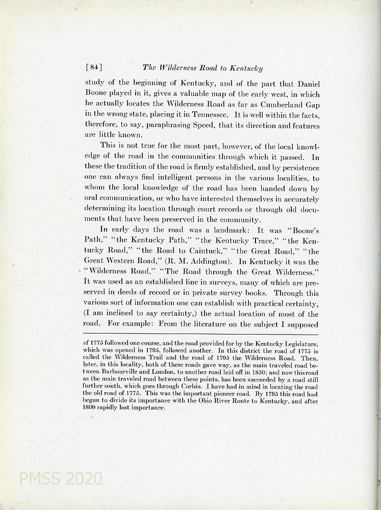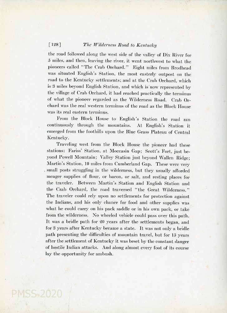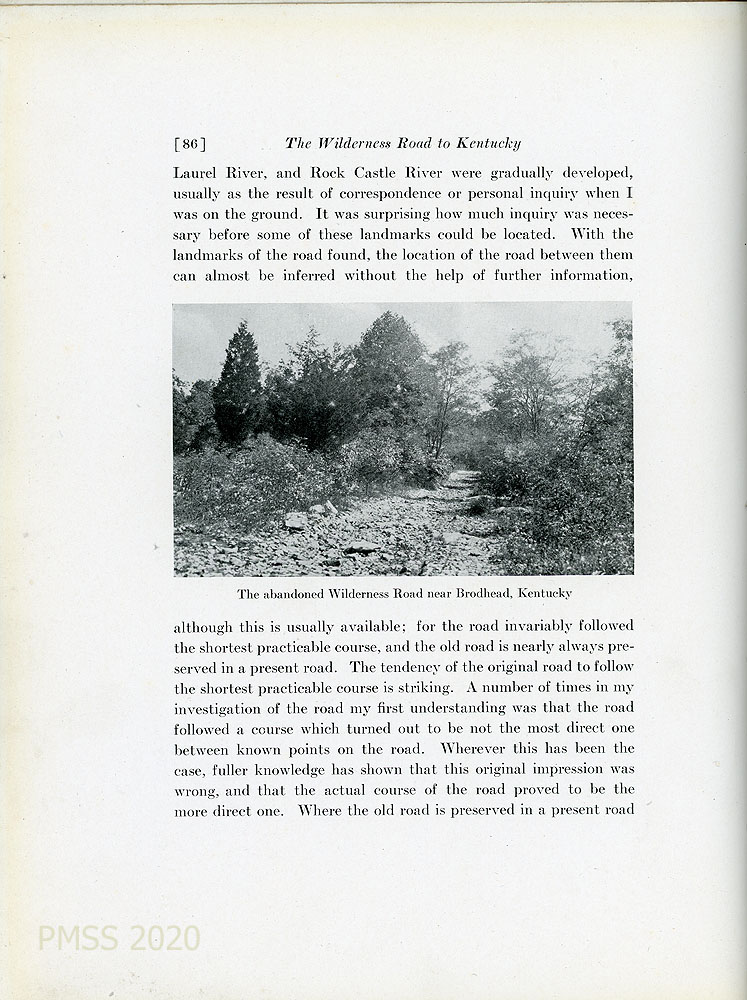 TAGS: Wilderness Road to Kentucky, 1921, maps, description of pioneer road, William Allen Pusey, geography, pioneers, William Brown, Daniel Boone, Thomas Walker, early travels, pioneer settlements, Native Americans, horses