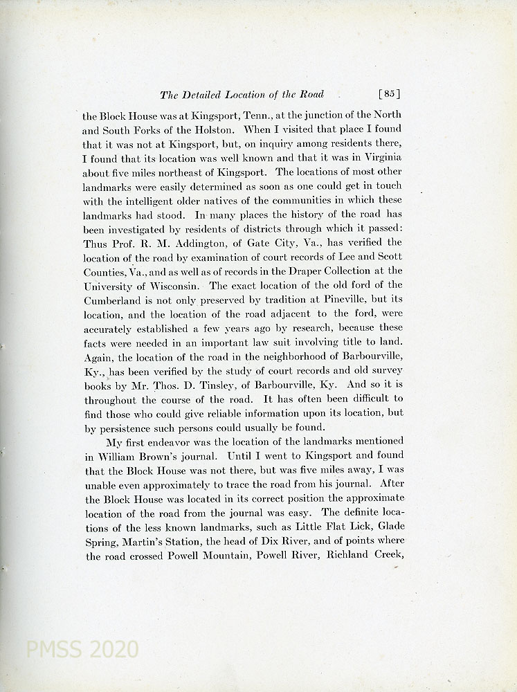 Chapter V The Detailed Location of the Road from the Blockhouse to Cumberland Gap