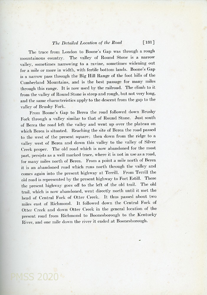 The Wilderness Road of Kentucky Part II is largely comprised of author Pusey’s work to determine as closely as possible the location of the Road from the Blockhouse to Cumberland Gap.