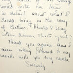 00015 (10) Handwritten two-page letter to [IMAGE OF PAGE 1 IS MISSING] from Peggy Twichell. Page 2. Asks if Mrs. Bishop can advise her about clothing to bring.