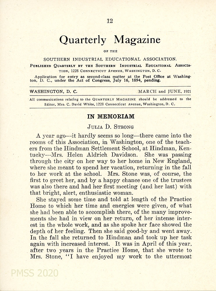 PUBLICATIONS RELATED 1921 Quarterly Magazine of the Southern Industrial Educational Association