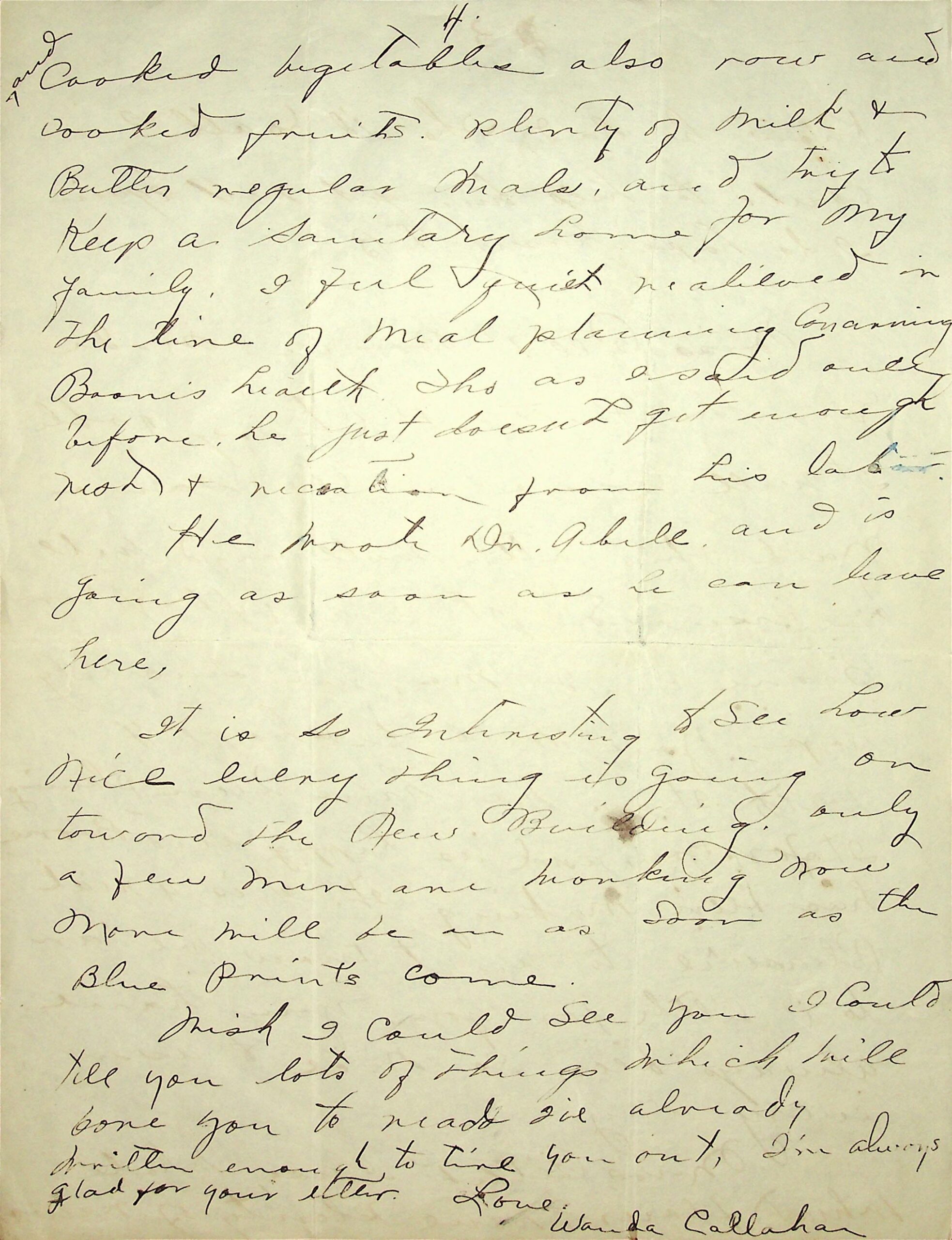 TAGS: B.C. “Boone” Callahan, correspondence, Mrs. Callahan, Glyn Morris, Wanda Callahan, laundry service, health exams