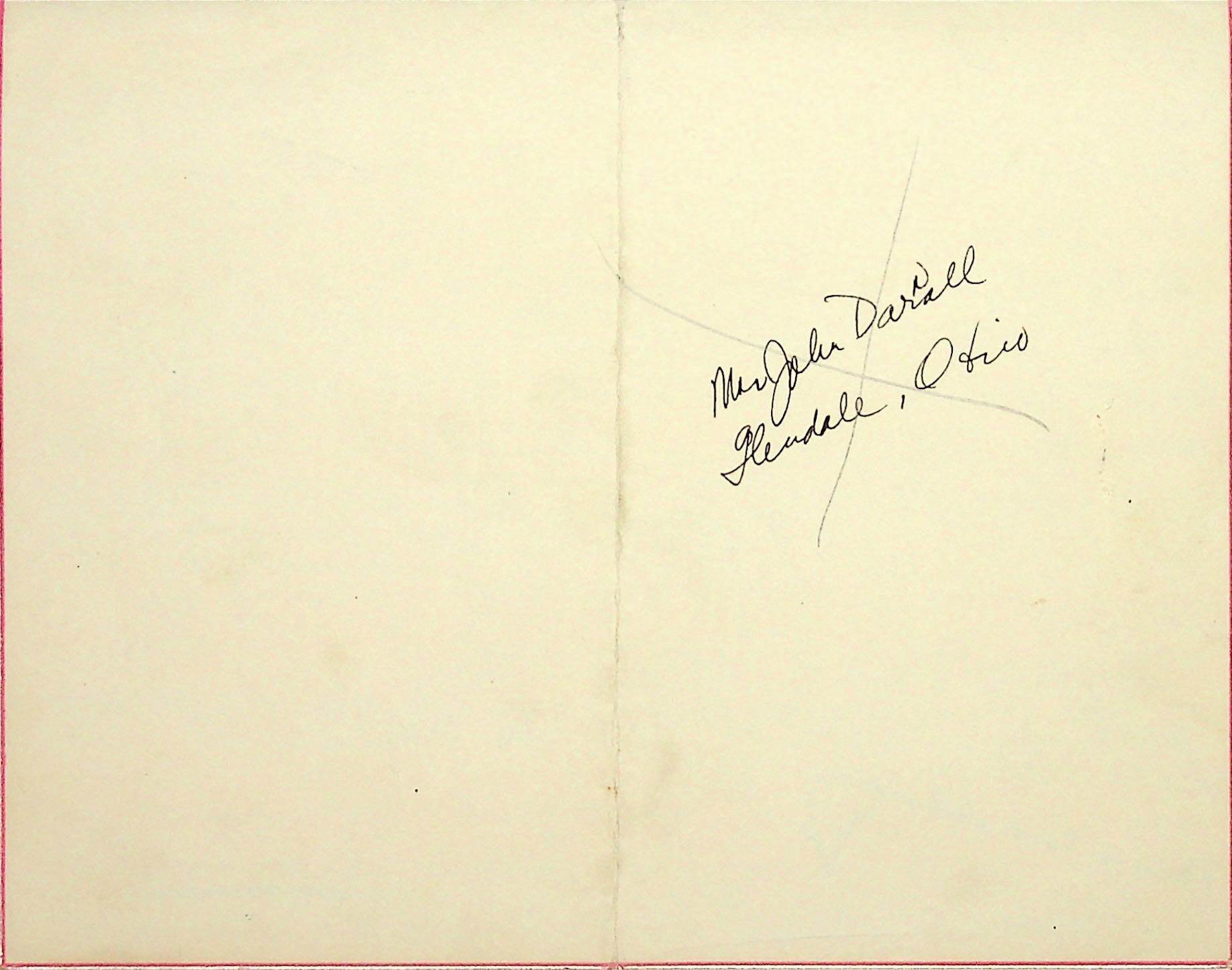 (94) N.D. Notation on a black sheet of paper: “Mrs. John Darnall, Glendale, Ohio” in ink, crossed out in pencil.