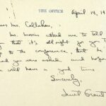 (75) April 14, 1942. Handwritten note to Mr. Callahan from Janet Grout in The Office, stating that Mr. Morris permits Boone to attend the meeting.