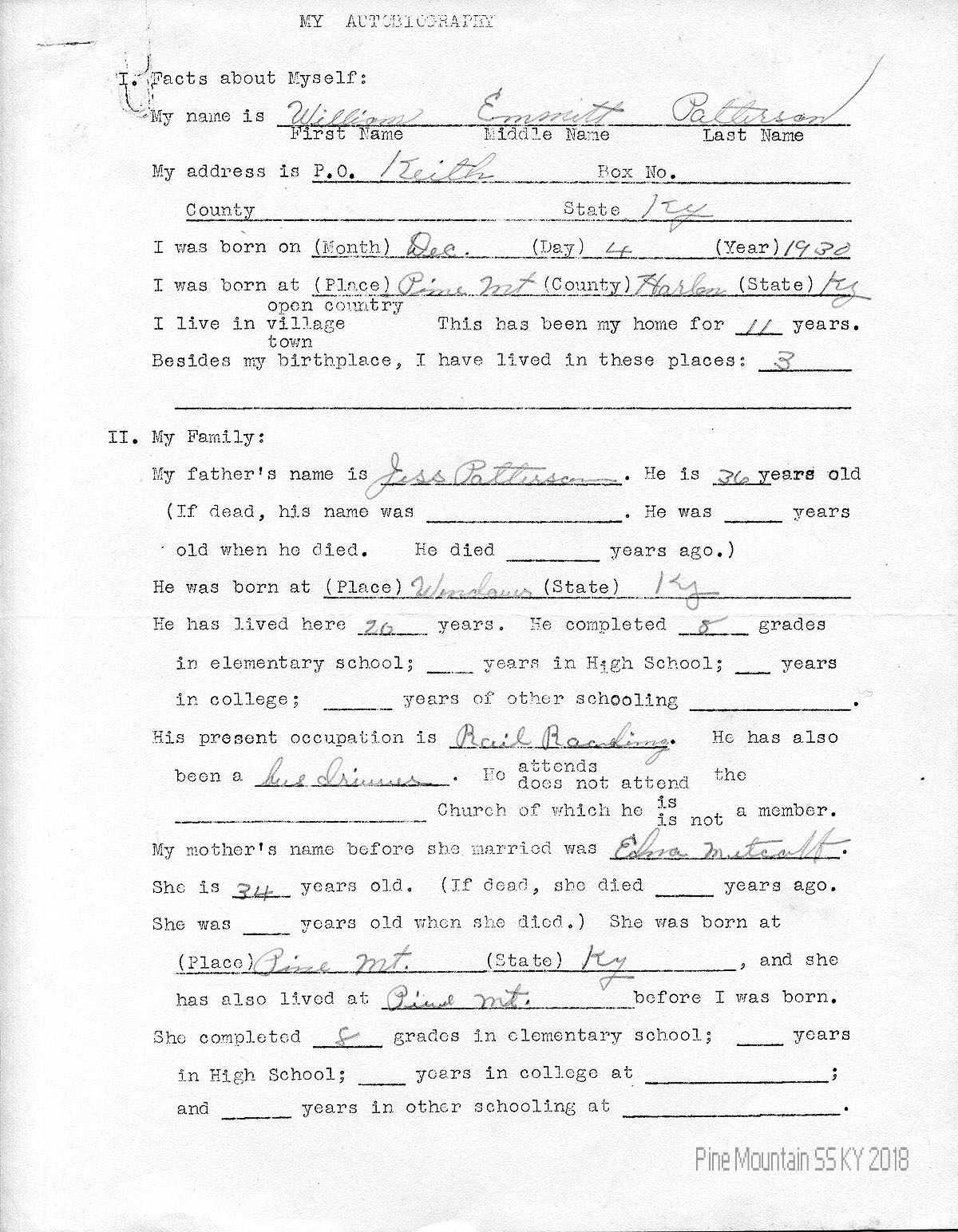 Born: December 4, 1930, at Pine Mt., Harlan County, KY