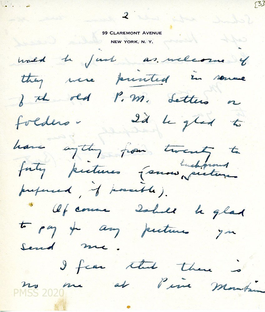 Do you have any snapshots of the play or of the guests at the school at Christmas or snow scene of the school? I’m enclosing five dollars…. I should be glad to have you use [the money] for Pine Mountain in any way you please.