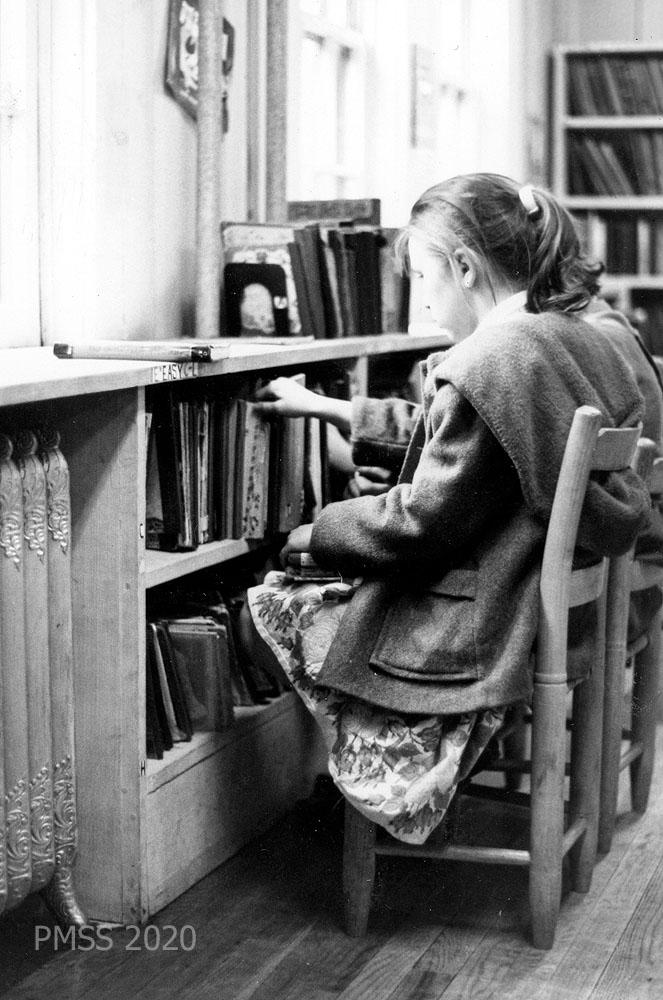 The LIBRARY of the 1950s-1970s at Pine Mountain was one of the richest experiences at the School for the children because of the very rich staffing and broad collections. Storytelling with Mary Rogers, the loan of much-loved books, and the sharing of mutual stories, the access to the Bookmobile from the Harlan County Schools and libraries, all contributed to a habit of life-long learning for many of the students. While the Community School no longer exists at Pine Mountain Settlement, the names of many of the students may be found in the check-out cards of the remaining books from the Library — many of which still survive in the ARCHIVE at the Settlement School.