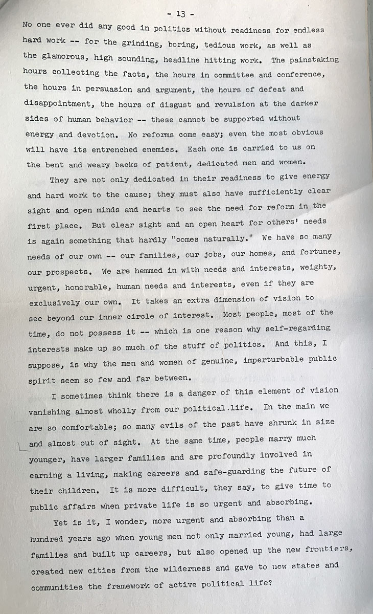 - 3430 Adlai Stevenson. Speech – “The Political Relevance of Moral Principle,” page 13.