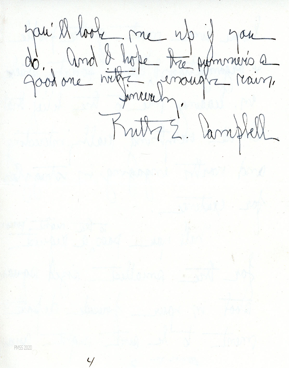 [NOTE: [Note: Letters from PMSS staff in the PMSS Collections are carbon copies, typewritten, unsigned, and meant for the Office files. The original signed copies were sent to the correspondents. Letters from Ruth Elizabeth Campbell are original and typewritten unless specified otherwise. The following list of contents is in chronological order and not necessarily in the order of the image numbers.]