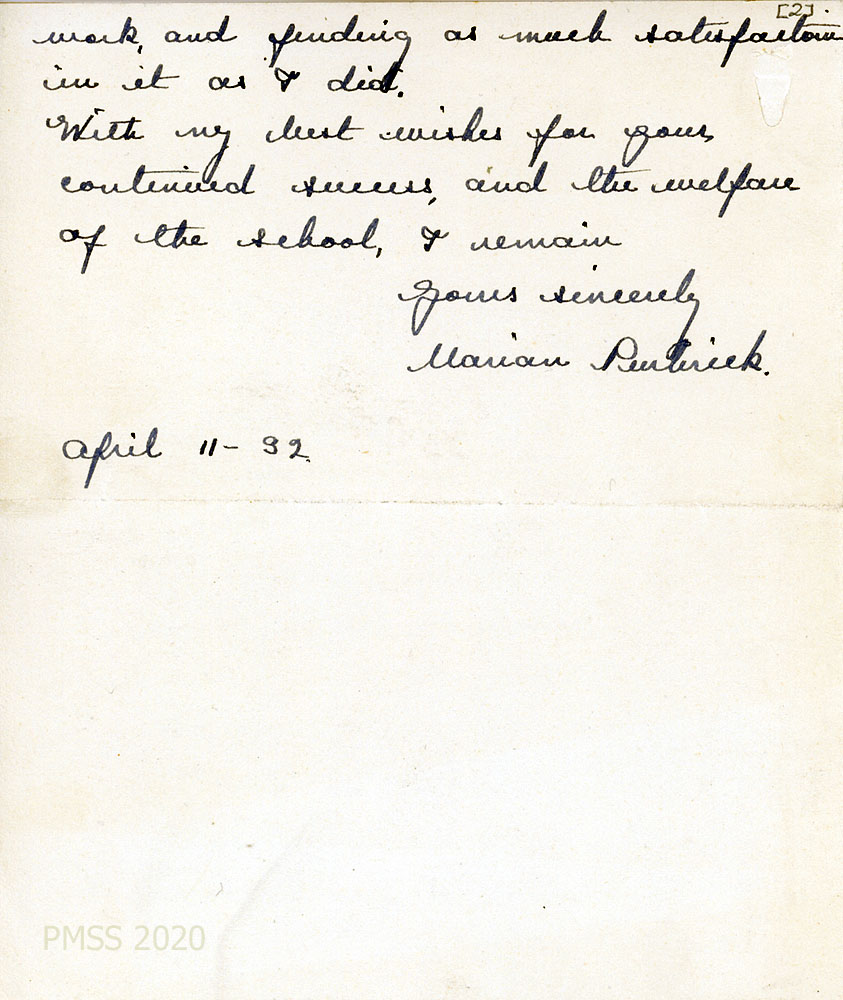 [Note: Letters from PMSS staff in the PMSS Collections are carbon copies, typewritten, unsigned, and meant for the Office files. The original signed copies were sent to the correspondents. The initials at the bottom left of most PMSS letters indicate the writer (along with initials of the secretary). For example, “GM” refers to Glyn A. Morris. All letters from Miss Marian Purbrick are handwritten. The following list of contents is in chronological order and not necessarily in order of the image numbers.]